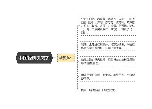 循经丸: 处方:川乌(炮、去皮脐)、当归(酒浸)、地龙(去土)、南星(炮),各三两。草乌(一两、炮、去皮脐),豆饼(二两、用黑豆、不以多少、去皮、好酒煮烂、使酒干擂碎、捏作饼子、晒干。),乳香(一两、别研),没药(一两、别研)。 制法:上为末,酒糊丸,如梧桐子大树图思维导图`搜集整理。