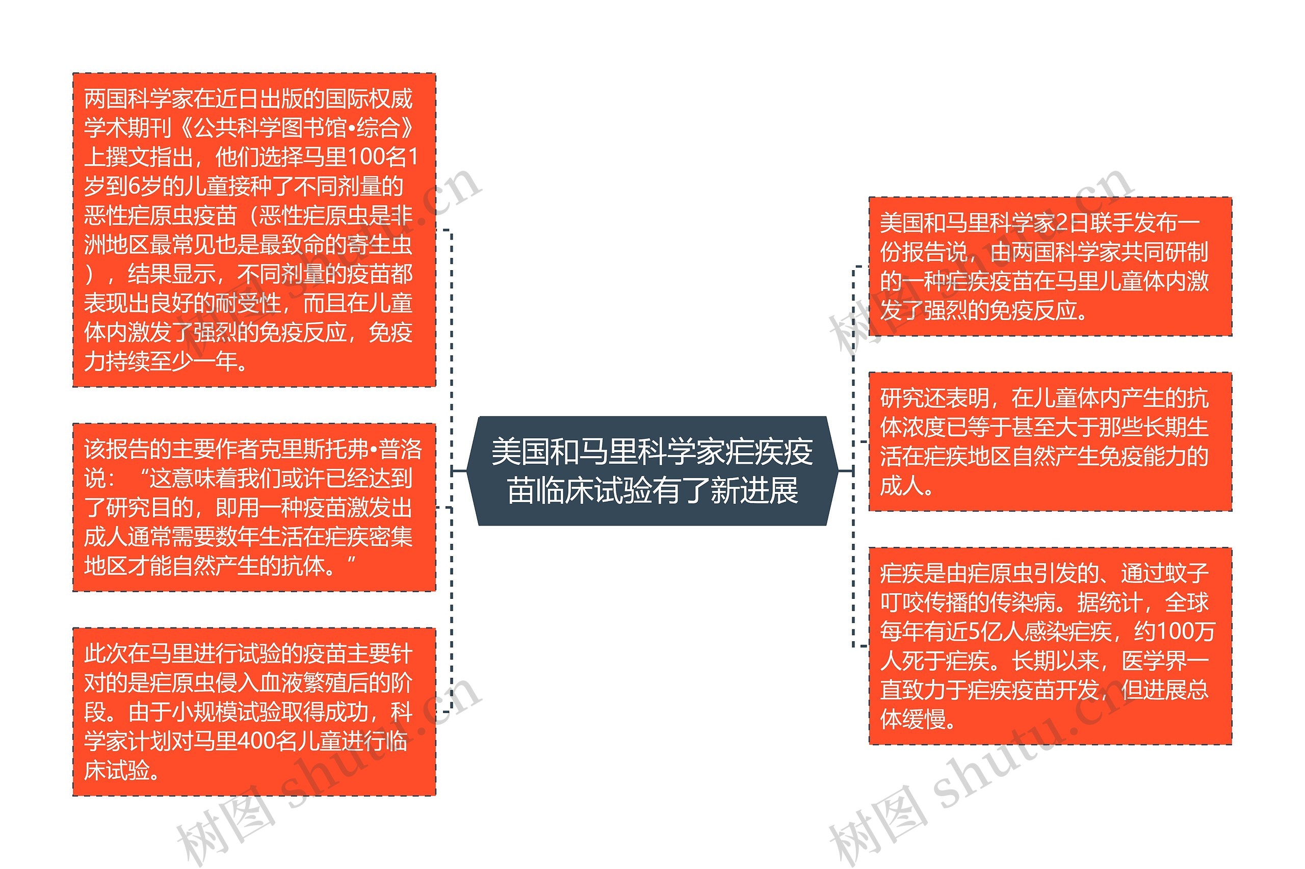 美国和马里科学家2日联手发布一份报告说,由两国科学家共同研制的一种疟疾疫苗在马里儿童体内激发了强烈的免疫反应。
