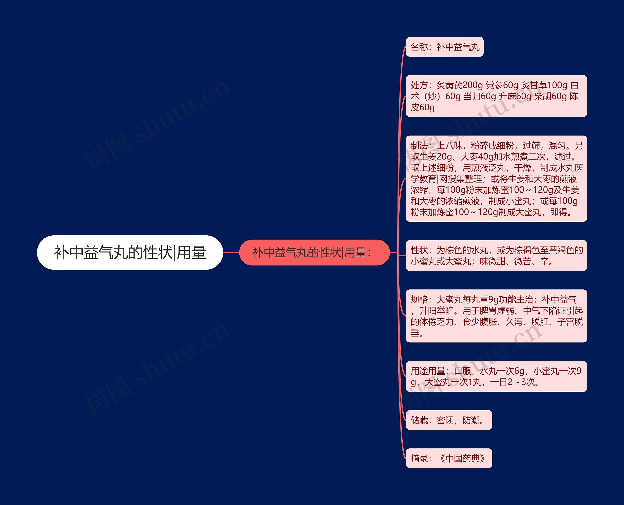 树图思维导图提供《补中益气丸的性状|用量》在线思维导图免费制作,点击“编辑”按钮,可对《补中益气丸的性状|用量》进行在线思维导图编辑,本思维导图属于思维导图模板主题,文件编号是:987b7bfe65c4be885171433128887911
