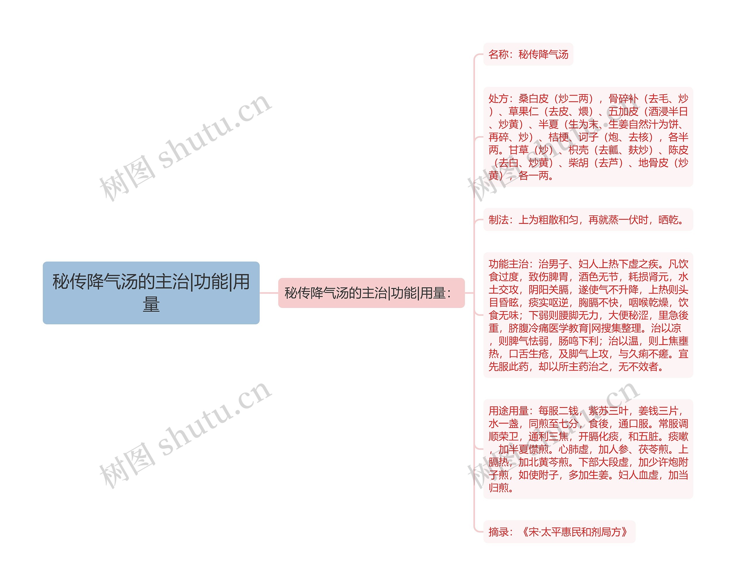 树图思维导图提供《秘传降气汤的主治|功能|用量》在线思维导图免费制作,点击“编辑”按钮,可对《秘传降气汤的主治|功能|用量》进行在线思维导图编辑,本思维导图属于思维导图模板主题,文件编号是:994473591c30e0e67ede95a7a7cc4186