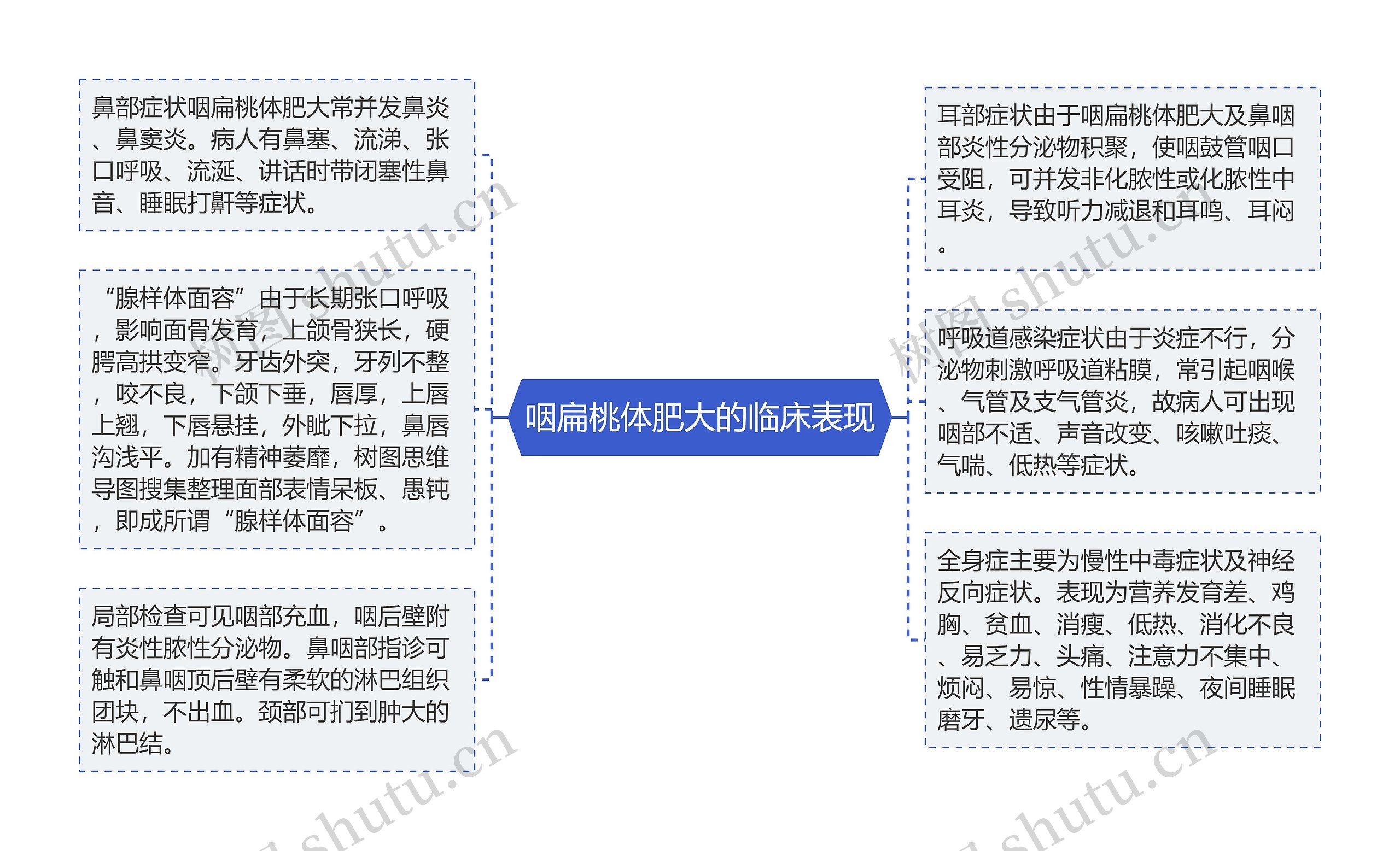 树图思维导图提供《咽扁桃体肥大的临床表现》在线思维导图免费制作,点击“编辑”按钮,可对《咽扁桃体肥大的临床表现》进行在线思维导图编辑,本思维导图属于思维导图模板主题,文件编号是:b9868d415f673cef493b59610e0bd5c2