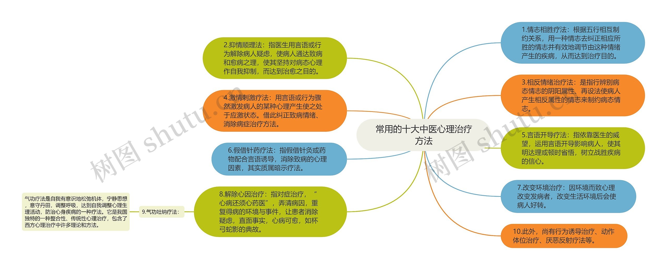 树图思维导图提供《常用的十大中医心理治疗方法》在线思维导图免费制作,点击“编辑”按钮,可对《常用的十大中医心理治疗方法》进行在线思维导图编辑,本思维导图属于思维导图模板主题,文件编号是:c8d9b4da79e30d1bc0c00717a5004405