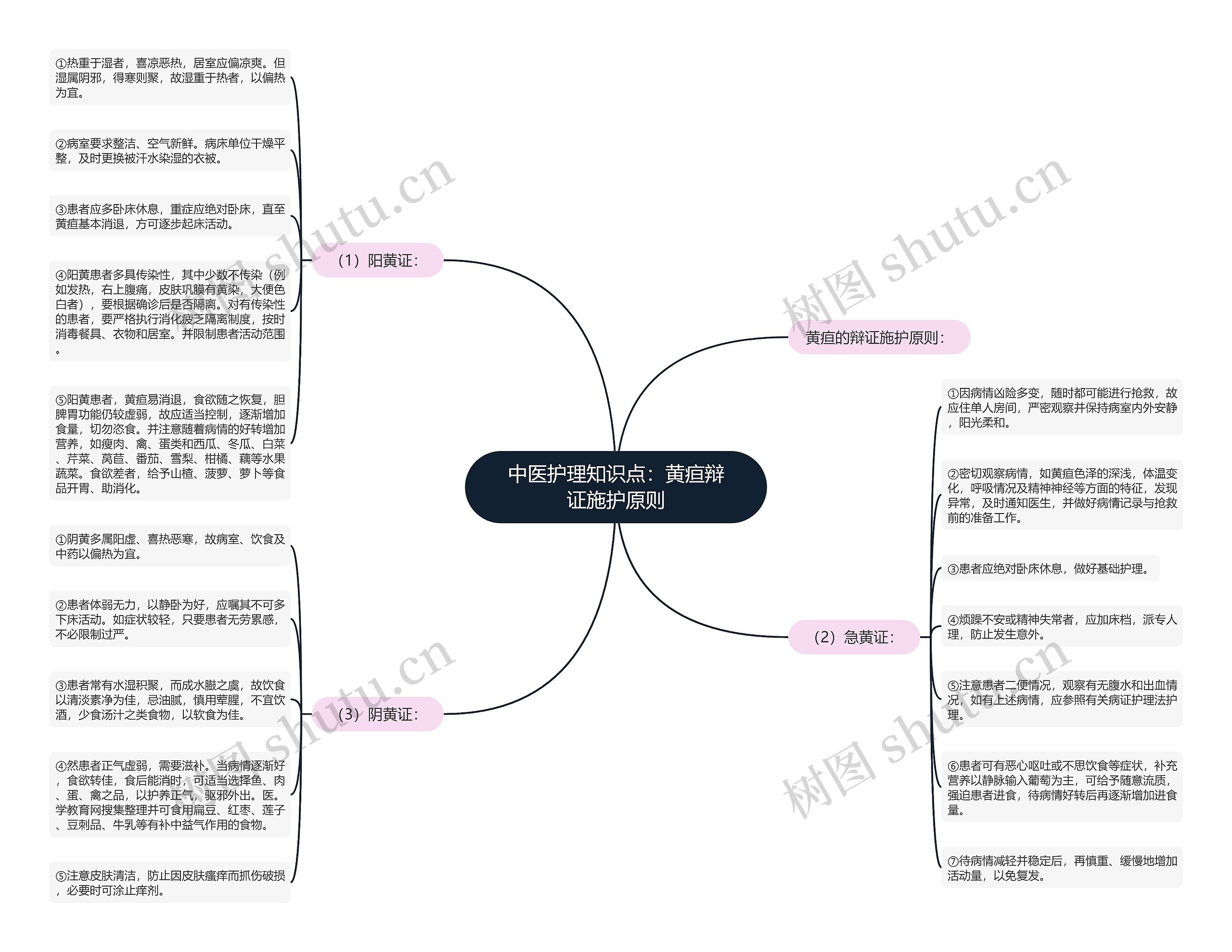 树图思维导图提供《中医护理知识点:黄疸辩证施护原则》在线思维导图免费制作,点击“编辑”按钮,可对《中医护理知识点:黄疸辩证施护原则》进行在线思维导图编辑,本思维导图属于思维导图模板主题,文件编号是:075fc5b1a4a149964d0fbdbc9699dd2d