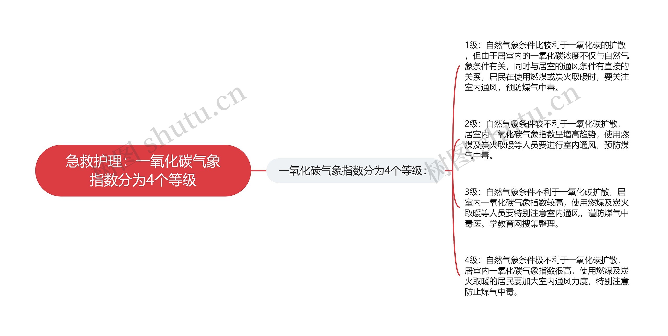 树图思维导图提供《急救护理:一氧化碳气象指数分为4个等级》在线思维导图免费制作,点击“编辑”按钮,可对《急救护理:一氧化碳气象指数分为4个等级》进行在线思维导图编辑,本思维导图属于思维导图模板主题,文件编号是:eb8466a768dac8f1c0c8009f21cb69e9