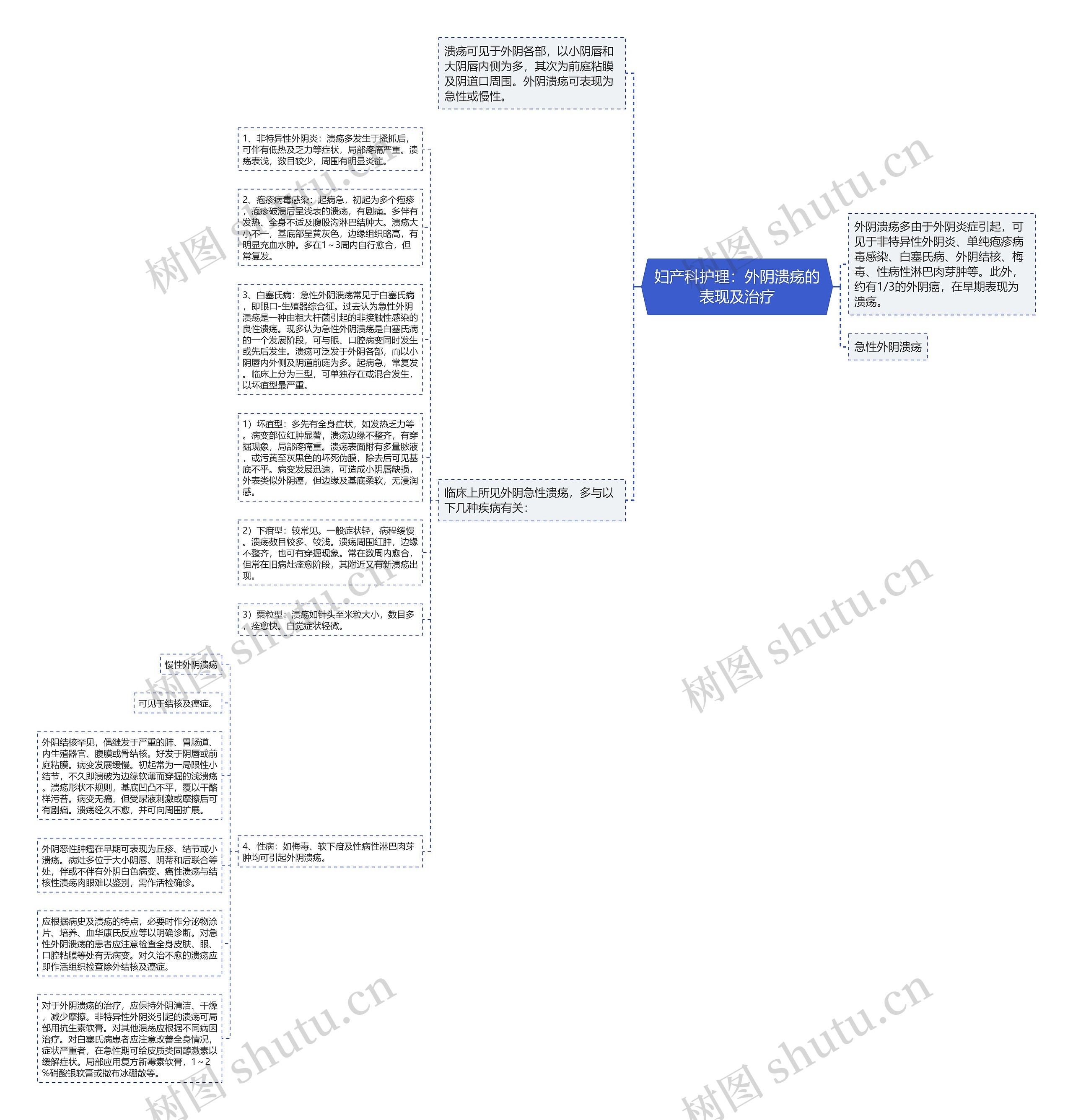 1)坏疽型:多先有全身症状,如发热乏力等。病变部位红肿显著,溃疡边缘不整齐,有穿掘现象,局部疼痛重。溃疡表面附有多量脓液,或污黄至灰黑色的坏死伪膜,除去后可见基底不平。病变发展迅速,可造成小阴唇缺损,外表类似外阴癌,但边缘及基底柔软,无浸润感。