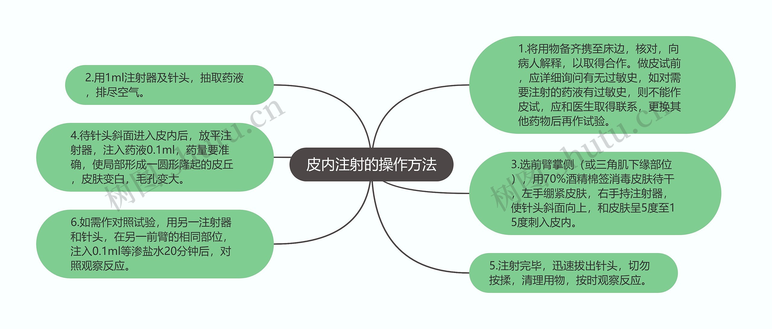 树图思维导图提供《皮内注射的操作方法》在线思维导图免费制作,点击“编辑”按钮,可对《皮内注射的操作方法》进行在线思维导图编辑,本思维导图属于思维导图模板主题,文件编号是:6c3179a68abdcad37458c392e06e7698