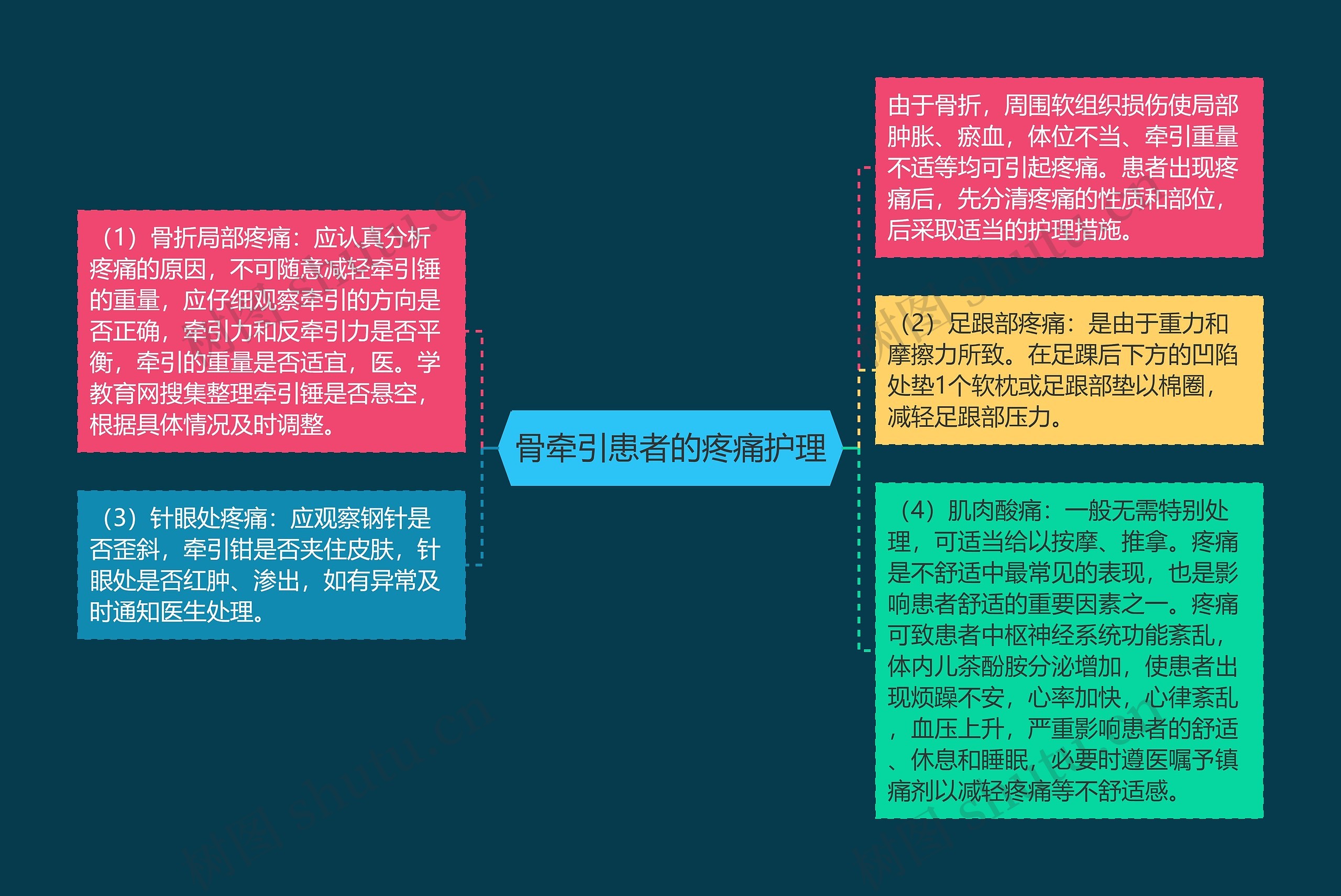 树图思维导图提供《骨牵引患者的疼痛护理》在线思维导图免费制作,点击“编辑”按钮,可对《骨牵引患者的疼痛护理》进行在线思维导图编辑,本思维导图属于思维导图模板主题,文件编号是:4bd8eb8567f8af2250aec18208a52790