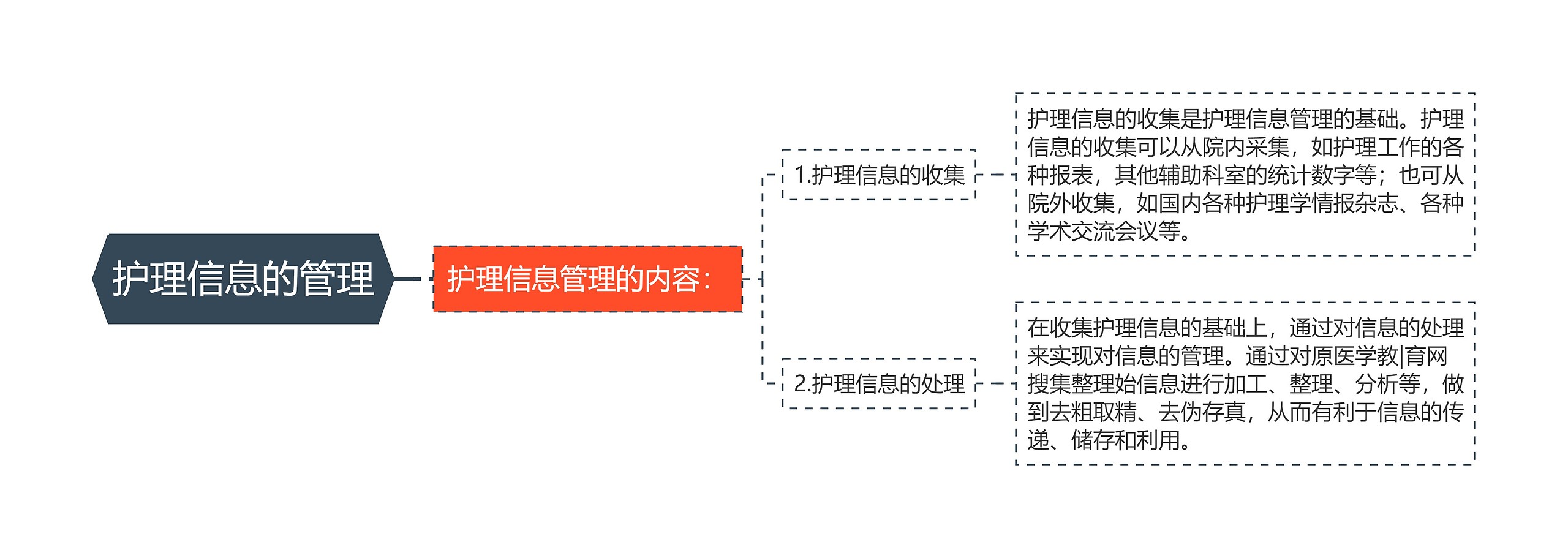 护理信息管理的内容: 1.护理信息的收集 护理信息的收集是护理信息管理的基础。护理信息的收集可以从院内采集,如护理工作的各种报表,其他辅助科室的统计数字等;也可从院外收集,如国内各种护理学情报杂志、各种学术交流会议等。