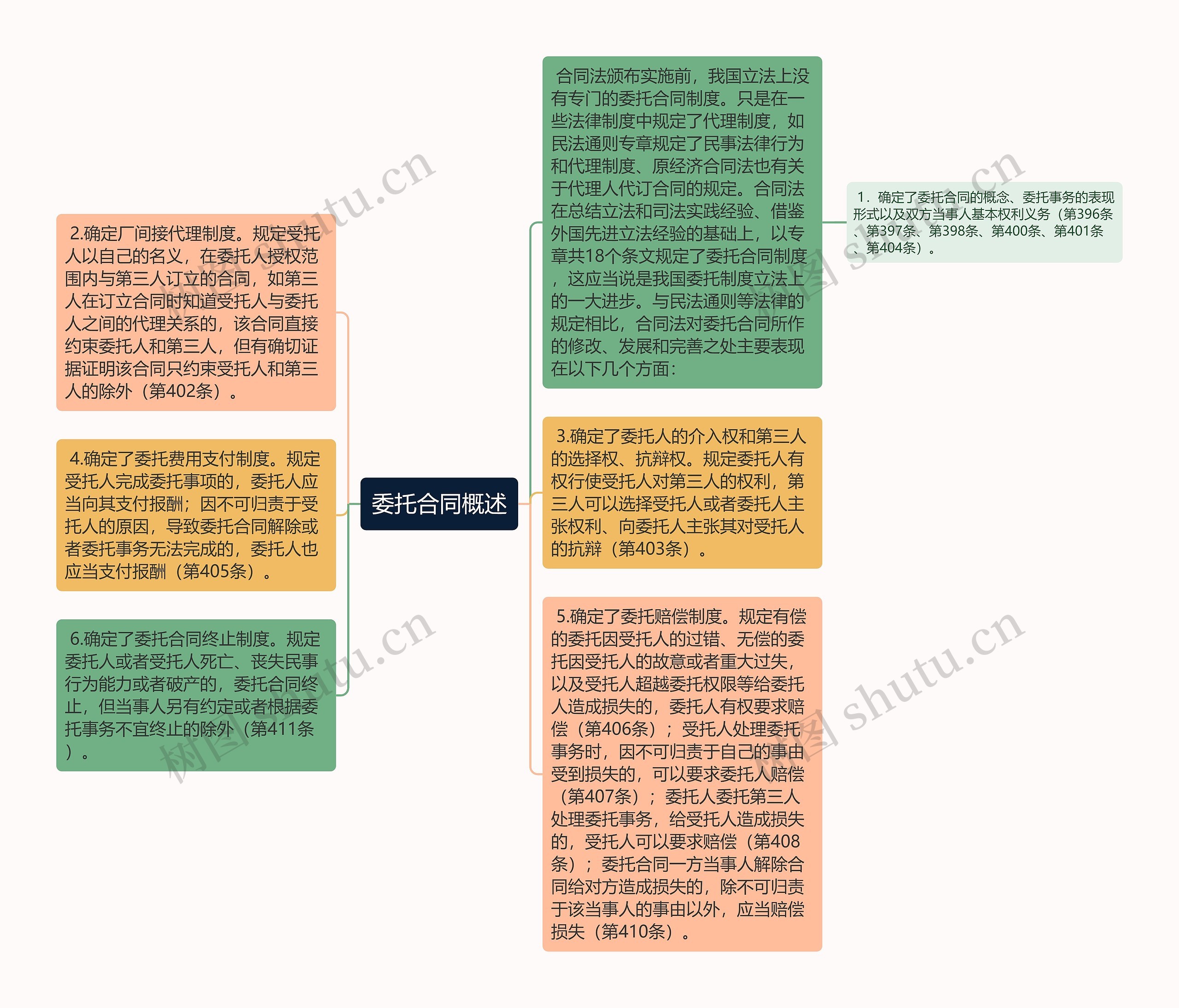 1.确定了委托合同的概念、委托事务的表现形式以及双方当事人基本权利义务(第396条、第397条、第398条、第400条、第401条、第404条)。