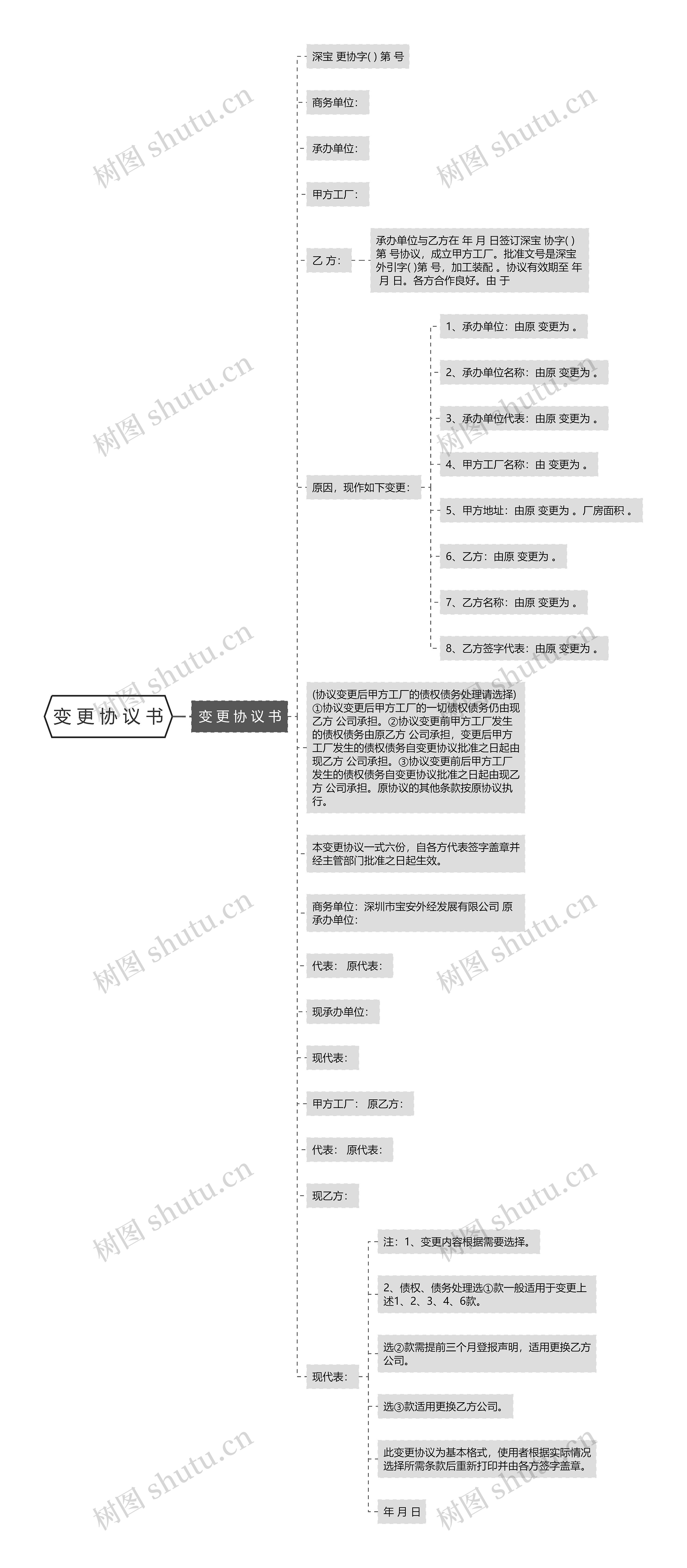 树图思维导图提供《变 更 协 议 书》在线思维导图免费制作,点击“编辑”按钮,可对《变 更 协 议 书》进行在线思维导图编辑,本思维导图属于思维导图模板主题,文件编号是:5f565a4abb8646c443ec292ac6cb076d