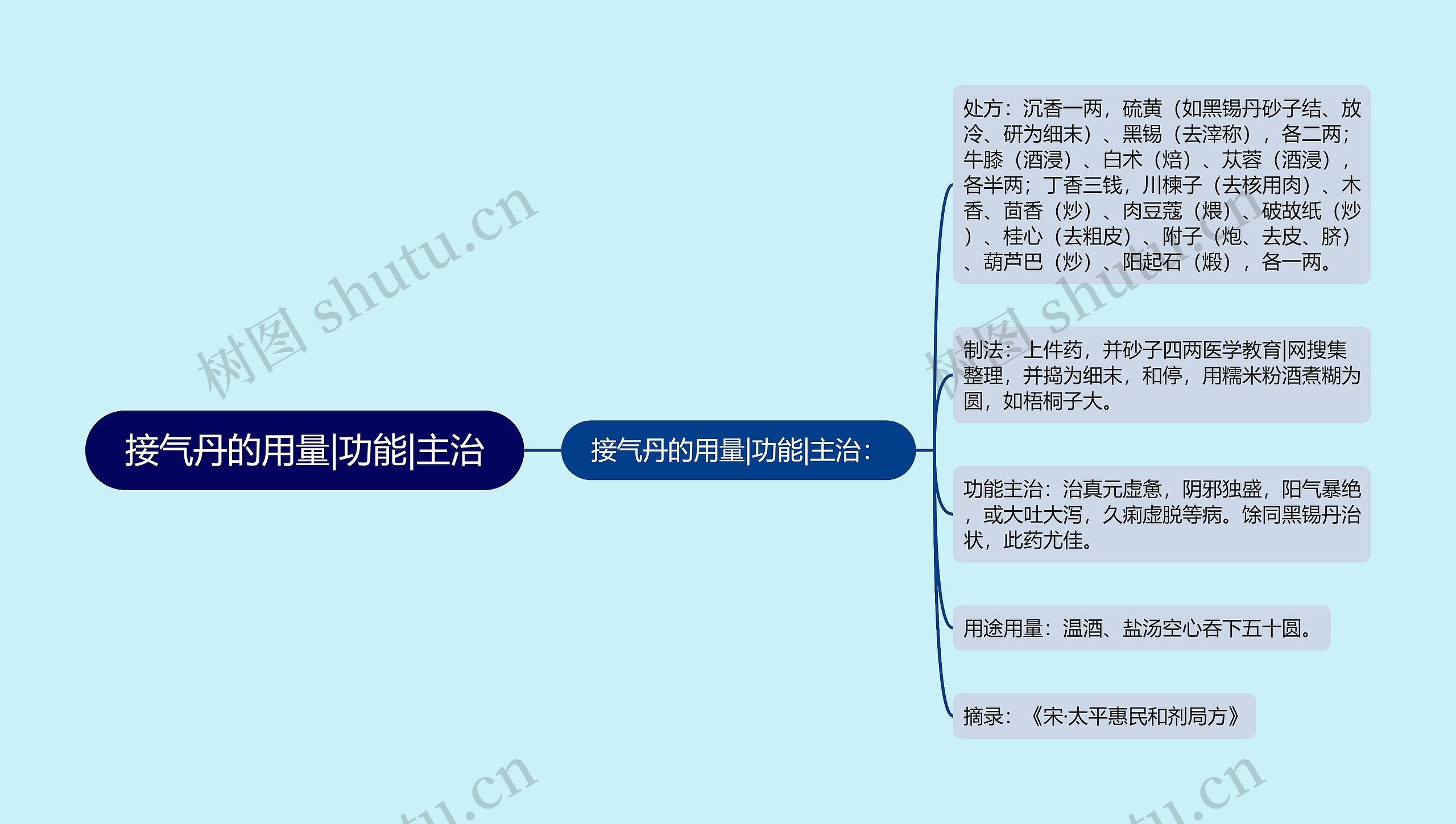 树图思维导图提供《接气丹的用量|功能|主治》在线思维导图免费制作,点击“编辑”按钮,可对《接气丹的用量|功能|主治》进行在线思维导图编辑,本思维导图属于思维导图模板主题,文件编号是:96cf91e6e8b4a978bb25b3670a12f81b
