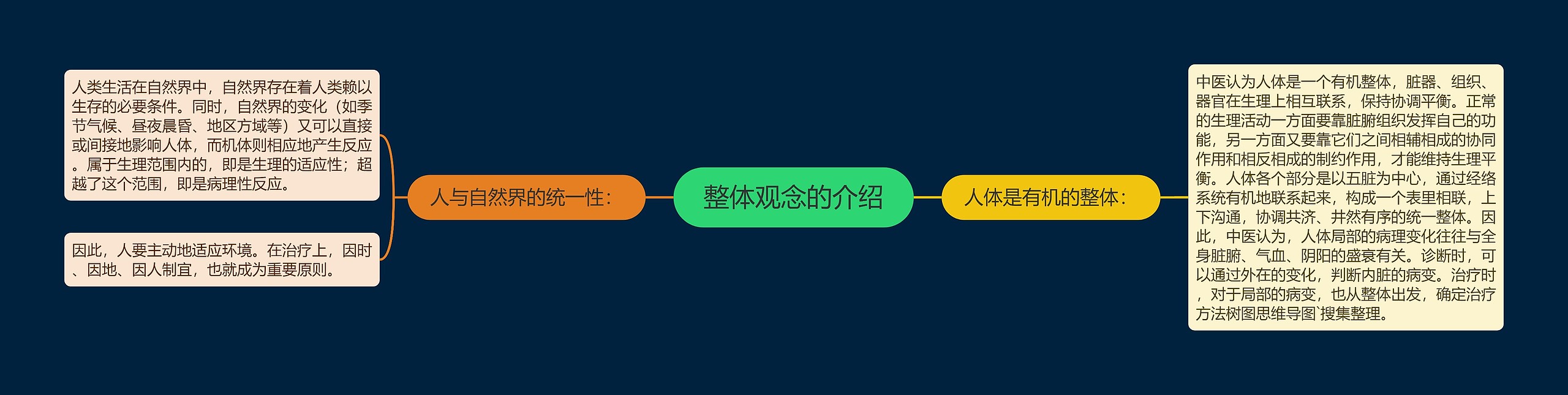 树图思维导图提供《整体观念的介绍》在线思维导图免费制作,点击“编辑”按钮,可对《整体观念的介绍》进行在线思维导图编辑,本思维导图属于思维导图模板主题,文件编号是:41310feaccbdb09dd4528a8befce1f94