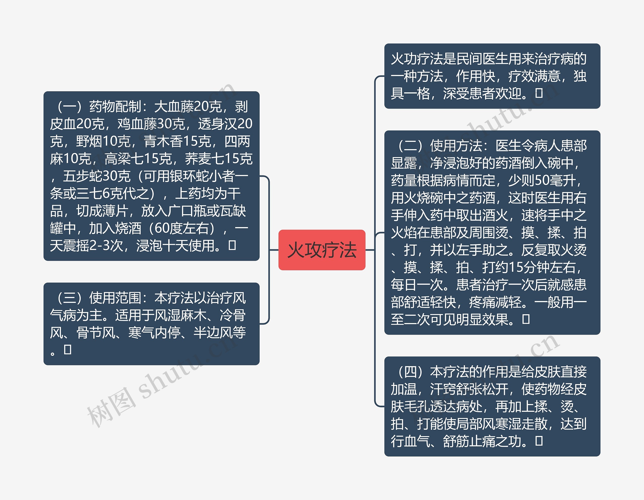 (二)使用方法:医生令病人患部显露,净浸泡好的药酒倒入碗中,药量根据病情而定,少则50毫升,用火烧碗中之药酒,这时医生用右手伸入药中取出酒火,速将手中之火焰在患部及周围烫、摸、揉、拍、打,并以左手助之。反复取火烫、摸、揉、拍、打约15分钟左右,每日一次。患者治疗一次后就感患部舒适轻快,疼痛减轻。一般用一至二次可见明显效果。