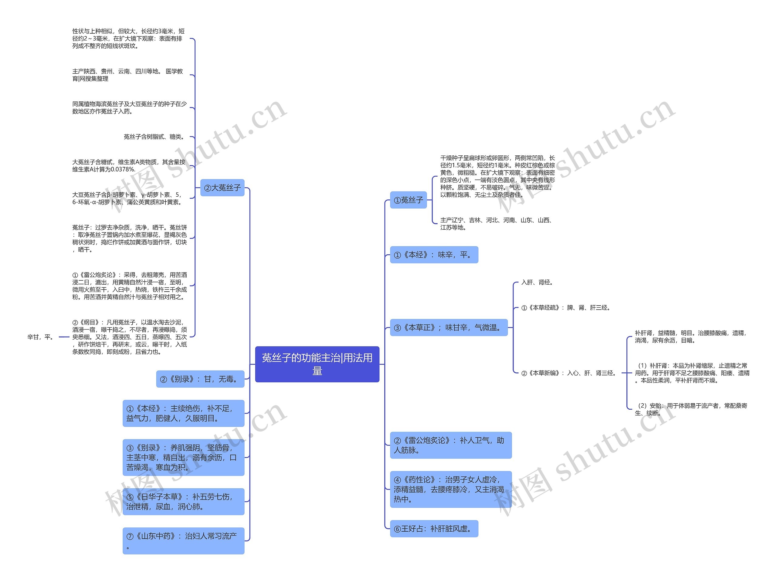 树图思维导图提供《菟丝子的功能主治|用法用量》在线思维导图免费制作,点击“编辑”按钮,可对《菟丝子的功能主治|用法用量》进行在线思维导图编辑,本思维导图属于思维导图模板主题,文件编号是:c275c938ed87ec86dd3054710347eada