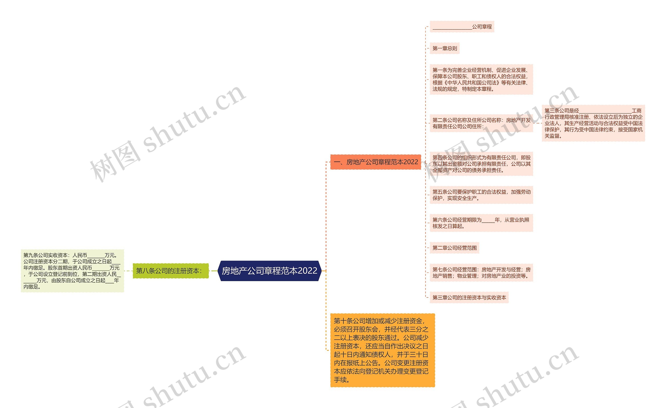 树图思维导图提供《房地产公司章程范本2022》在线思维导图免费制作,点击“编辑”按钮,可对《房地产公司章程范本2022》进行在线思维导图编辑,本思维导图属于思维导图模板主题,文件编号是:14c6ab48abf52c9b23a716c9a4961e58