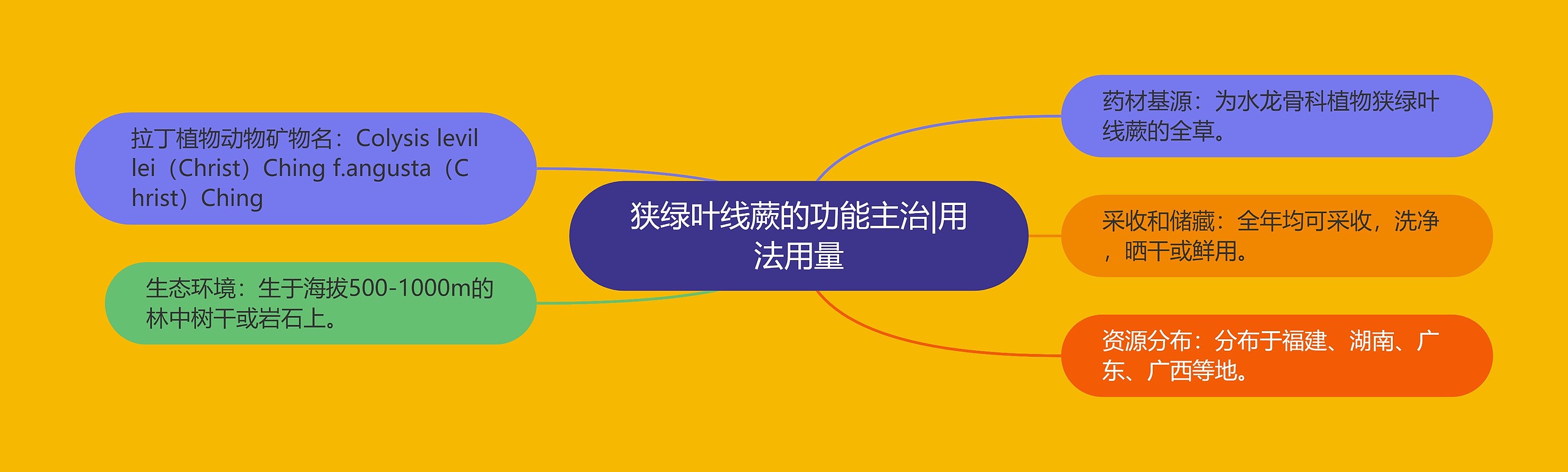 树图思维导图提供《狭绿叶线蕨的功能主治|用法用量》在线思维导图免费制作,点击“编辑”按钮,可对《狭绿叶线蕨的功能主治|用法用量》进行在线思维导图编辑,本思维导图属于思维导图模板主题,文件编号是:4d399142a379d3e7c780a356127d94d7