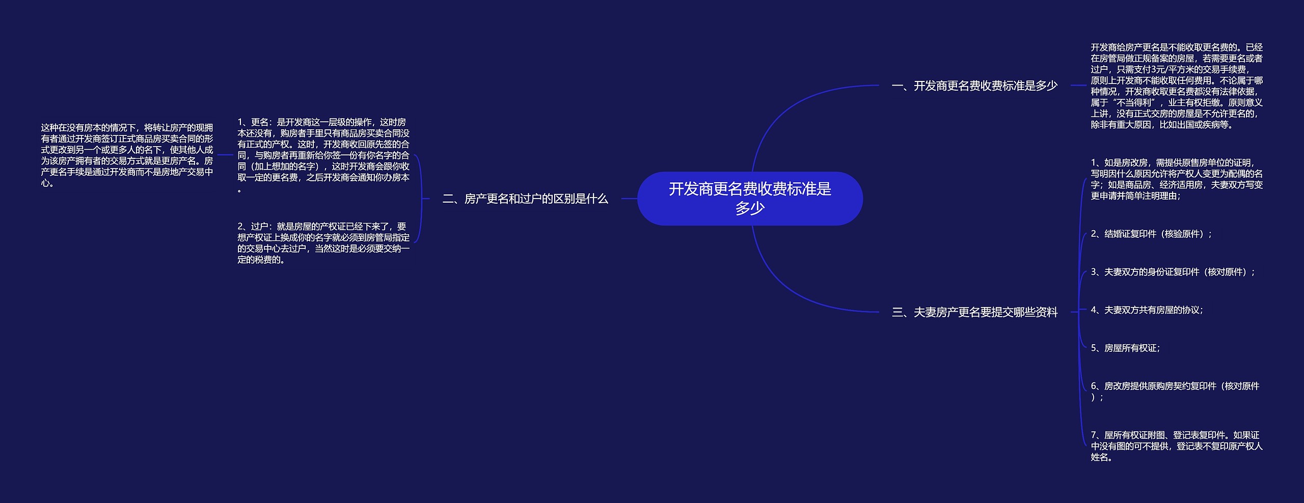 树图思维导图提供《开发商更名费收费标准是多少》在线思维导图免费制作,点击“编辑”按钮,可对《开发商更名费收费标准是多少》进行在线思维导图编辑,本思维导图属于思维导图模板主题,文件编号是:ff5cb1866d3bc75c784aaf0b375c0100