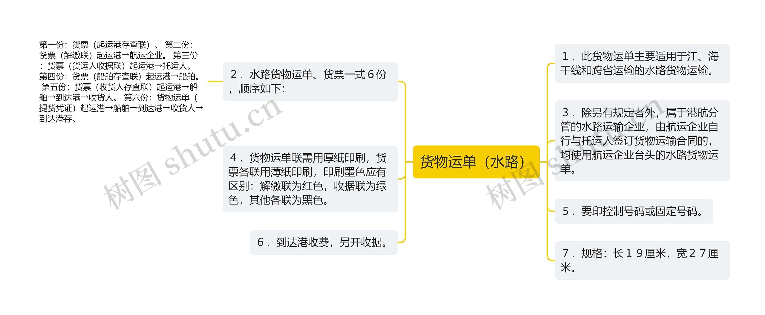 树图思维导图提供《货物运单(水路)》在线思维导图免费制作,点击“编辑”按钮,可对《货物运单(水路)》进行在线思维导图编辑,本思维导图属于思维导图模板主题,文件编号是:c78e7855922fc69d3b1d2fd64f55bdb7