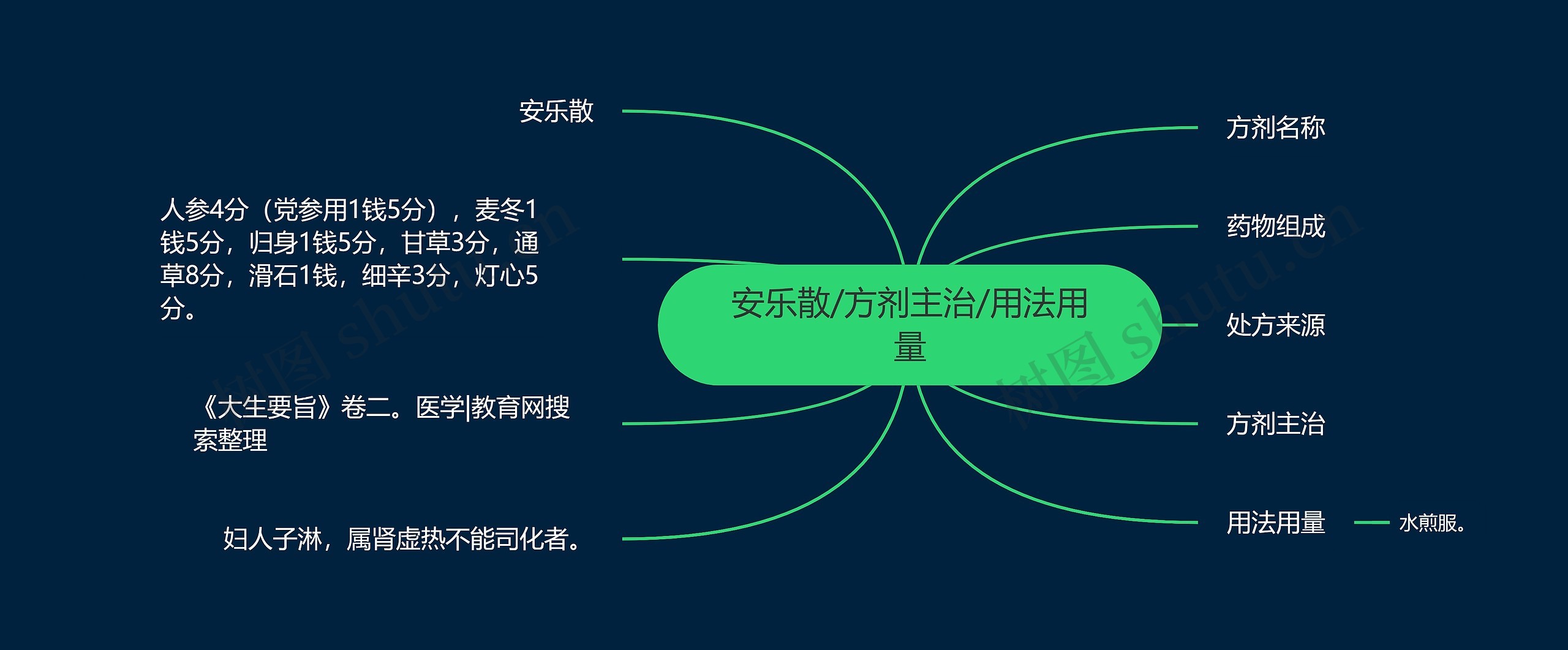 树图思维导图提供《安乐散/方剂主治/用法用量》在线思维导图免费制作,点击“编辑”按钮,可对《安乐散/方剂主治/用法用量》进行在线思维导图编辑,本思维导图属于思维导图模板主题,文件编号是:9d47d4cdb8b6bd972e2fcdbf1adac8e6