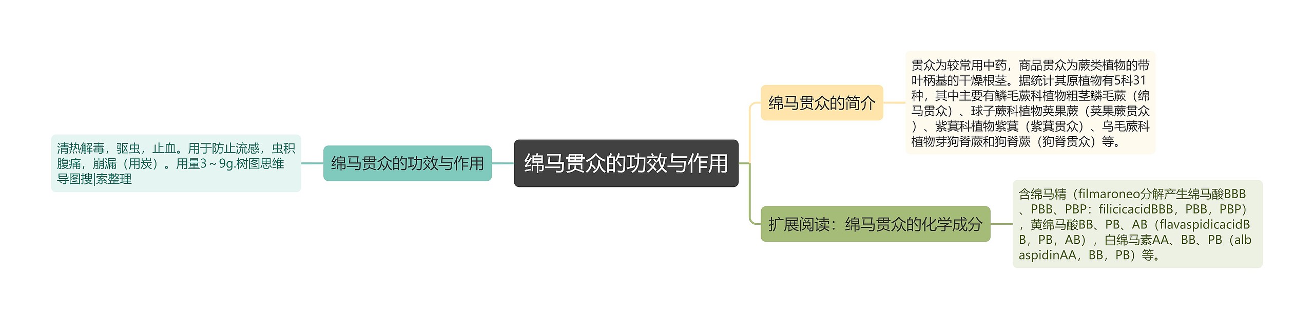 树图思维导图提供《绵马贯众的功效与作用》在线思维导图免费制作,点击“编辑”按钮,可对《绵马贯众的功效与作用》进行在线思维导图编辑,本思维导图属于思维导图模板主题,文件编号是:082350401e9c6b839890c6a02a289f48