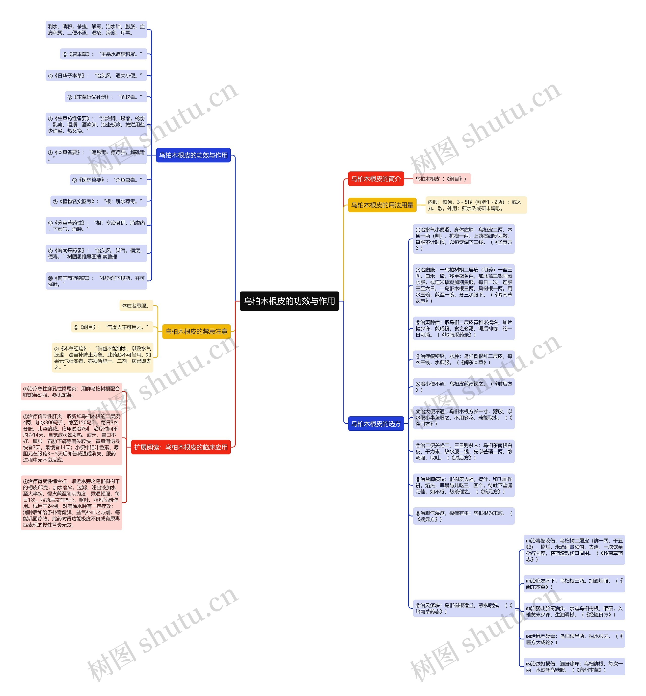 ④治症瘕积聚,水肿:乌桕树根鲜二层皮,每次三钱,水煎服。(《闽东本草》)