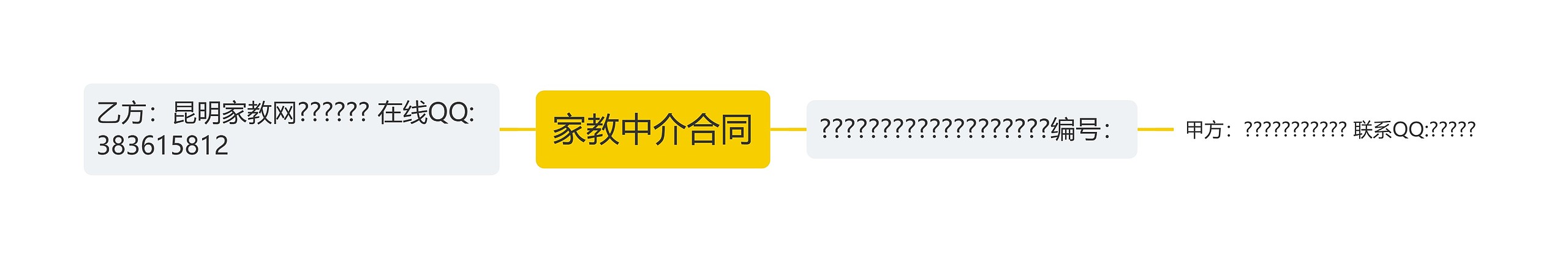 树图思维导图提供《家教中介合同》在线思维导图免费制作,点击“编辑”按钮,可对《家教中介合同》进行在线思维导图编辑,本思维导图属于思维导图模板主题,文件编号是:b99e70cacf478243987fe8e68c659e17