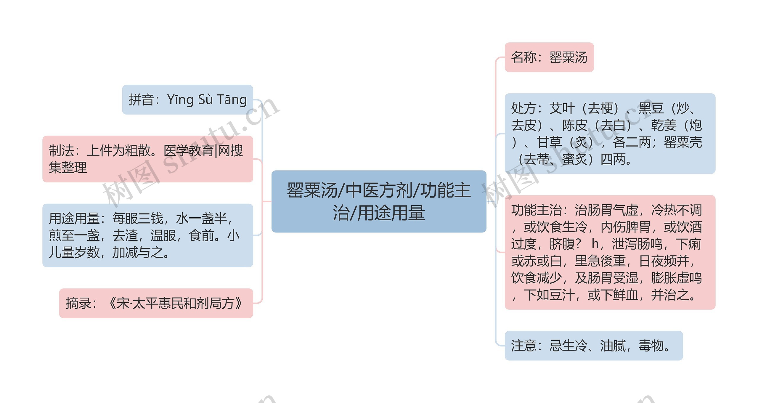 树图思维导图提供《罂粟汤/中医方剂/功能主治/用途用量》在线思维导图免费制作,点击“编辑”按钮,可对《罂粟汤/中医方剂/功能主治/用途用量》进行在线思维导图编辑,本思维导图属于思维导图模板主题,文件编号是:d903750eaac33654783839c49c4a3251