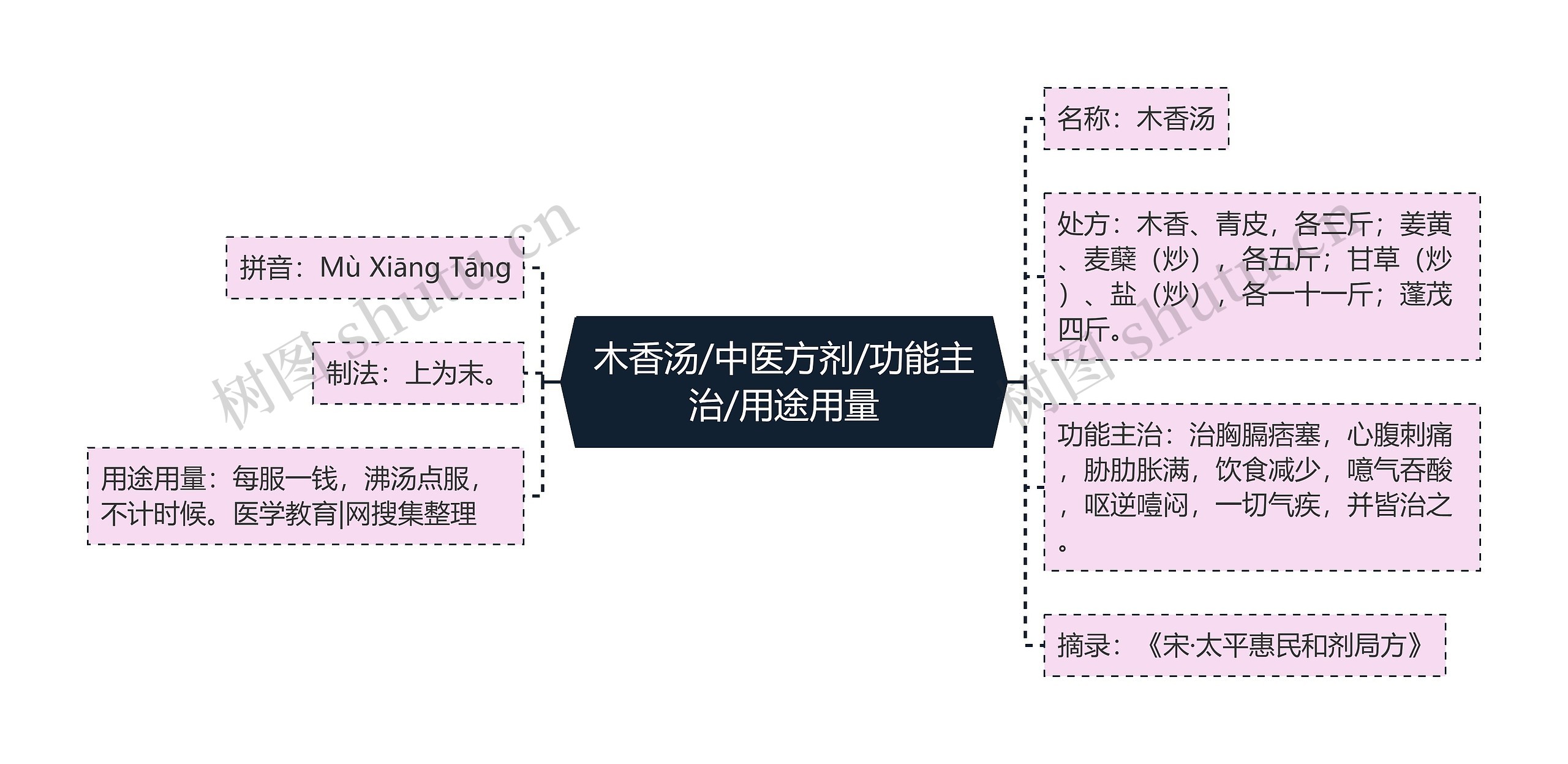 树图思维导图提供《木香汤/中医方剂/功能主治/用途用量》在线思维导图免费制作,点击“编辑”按钮,可对《木香汤/中医方剂/功能主治/用途用量》进行在线思维导图编辑,本思维导图属于思维导图模板主题,文件编号是:026bd6a91779661c9132cb3efdb2b8f0