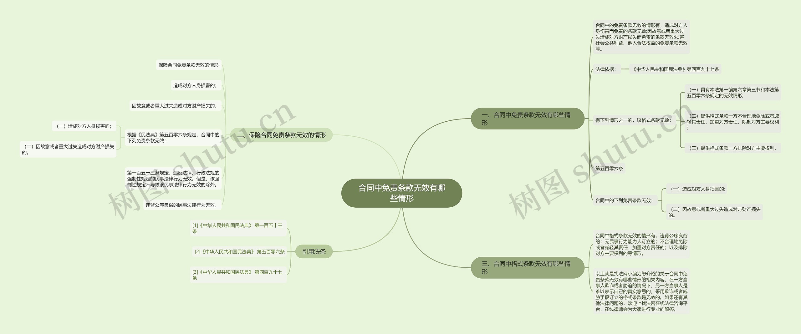 树图思维导图提供《合同中免责条款无效有哪些情形》在线思维导图免费制作,点击“编辑”按钮,可对《合同中免责条款无效有哪些情形》进行在线思维导图编辑,本思维导图属于思维导图模板主题,文件编号是:6f719ada4df15e743093cb855afe5dfa