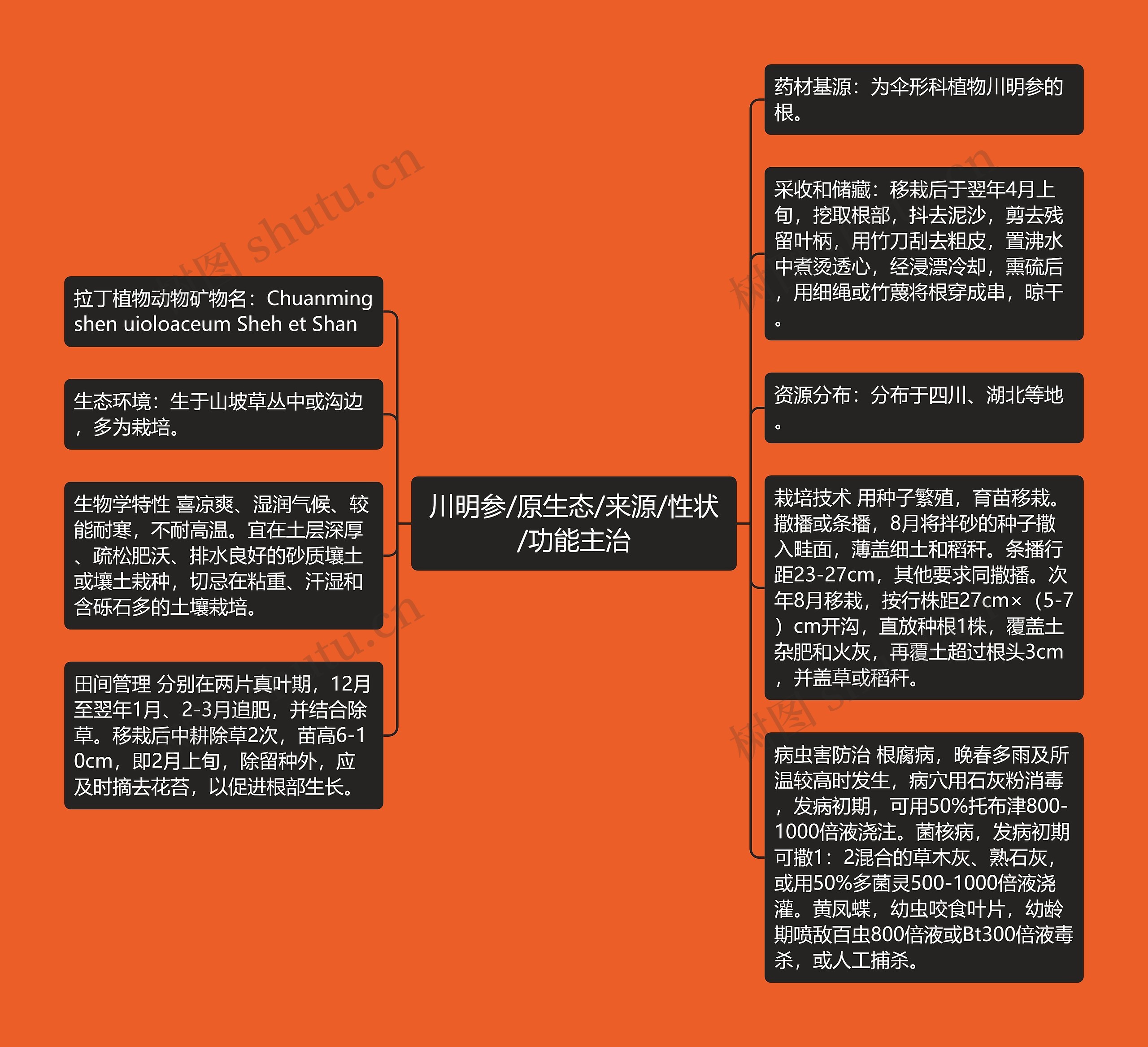 采收和储藏:移栽后于翌年4月上旬,挖取根部,抖去泥沙,剪去残留叶柄,用竹刀刮去粗皮,置沸水中煮烫透心,经浸漂冷却,熏硫后,用细绳或竹蔑将根穿成串,晾干。
