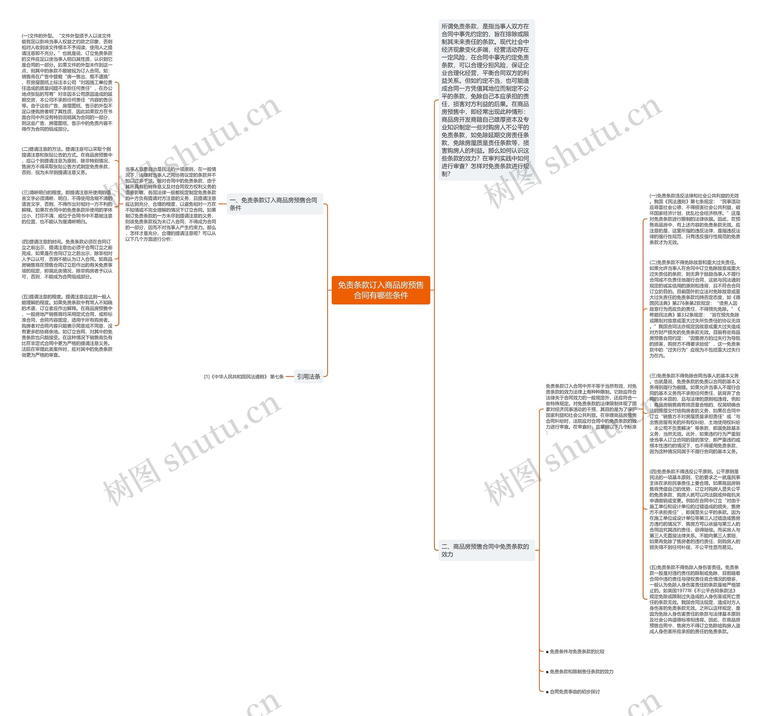 (一)免责条款违反法律和社会公共利益的无效。我国《民法通则》第七条规定:“民事活动应尊重社会公德,不得损害社会公共利益,破坏国家经济计划,扰乱社会经济秩序。”这是对免责条款进行限制的法律依据。因此,在预售商品房中,有上述内容的免责条款无效。应注意的是,这里所指的违反法律,是指违反法律的强行性规范,只有违反强行性规范的免责条款才为无效。