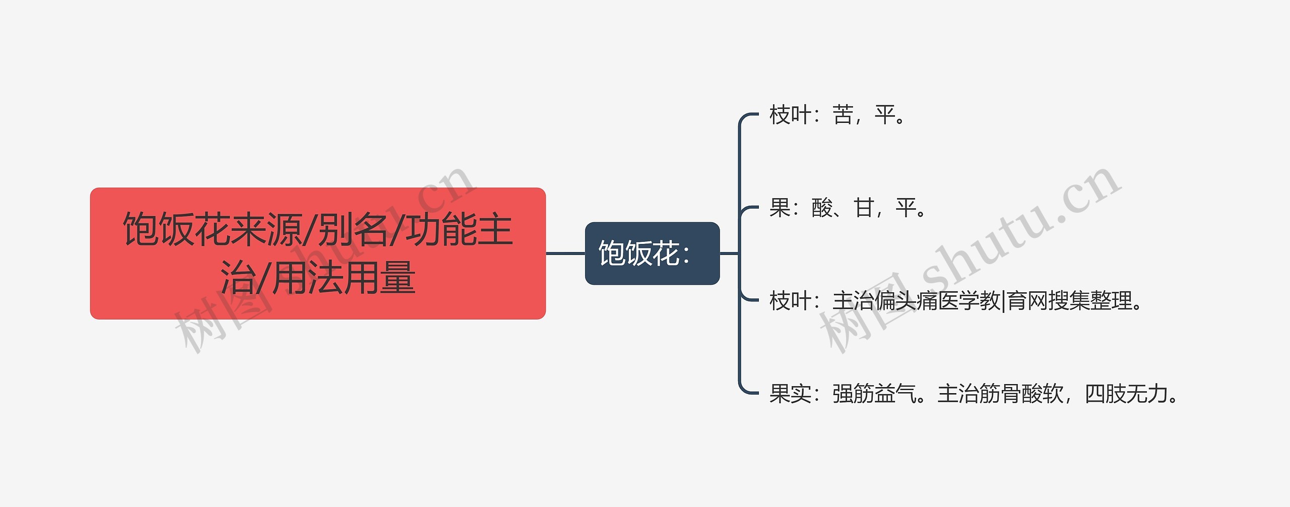 树图思维导图提供《饱饭花来源/别名/功能主治/用法用量》在线思维导图免费制作,点击“编辑”按钮,可对《饱饭花来源/别名/功能主治/用法用量》进行在线思维导图编辑,本思维导图属于思维导图模板主题,文件编号是:fe96e11377b47d499a448f280a120963