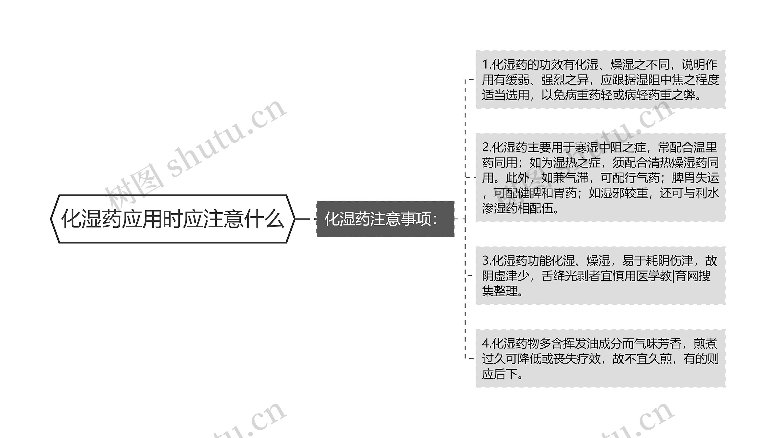 树图思维导图提供《化湿药应用时应注意什么》在线思维导图免费制作,点击“编辑”按钮,可对《化湿药应用时应注意什么》进行在线思维导图编辑,本思维导图属于思维导图模板主题,文件编号是:12d1350620a8e8acf1e59546567b552e