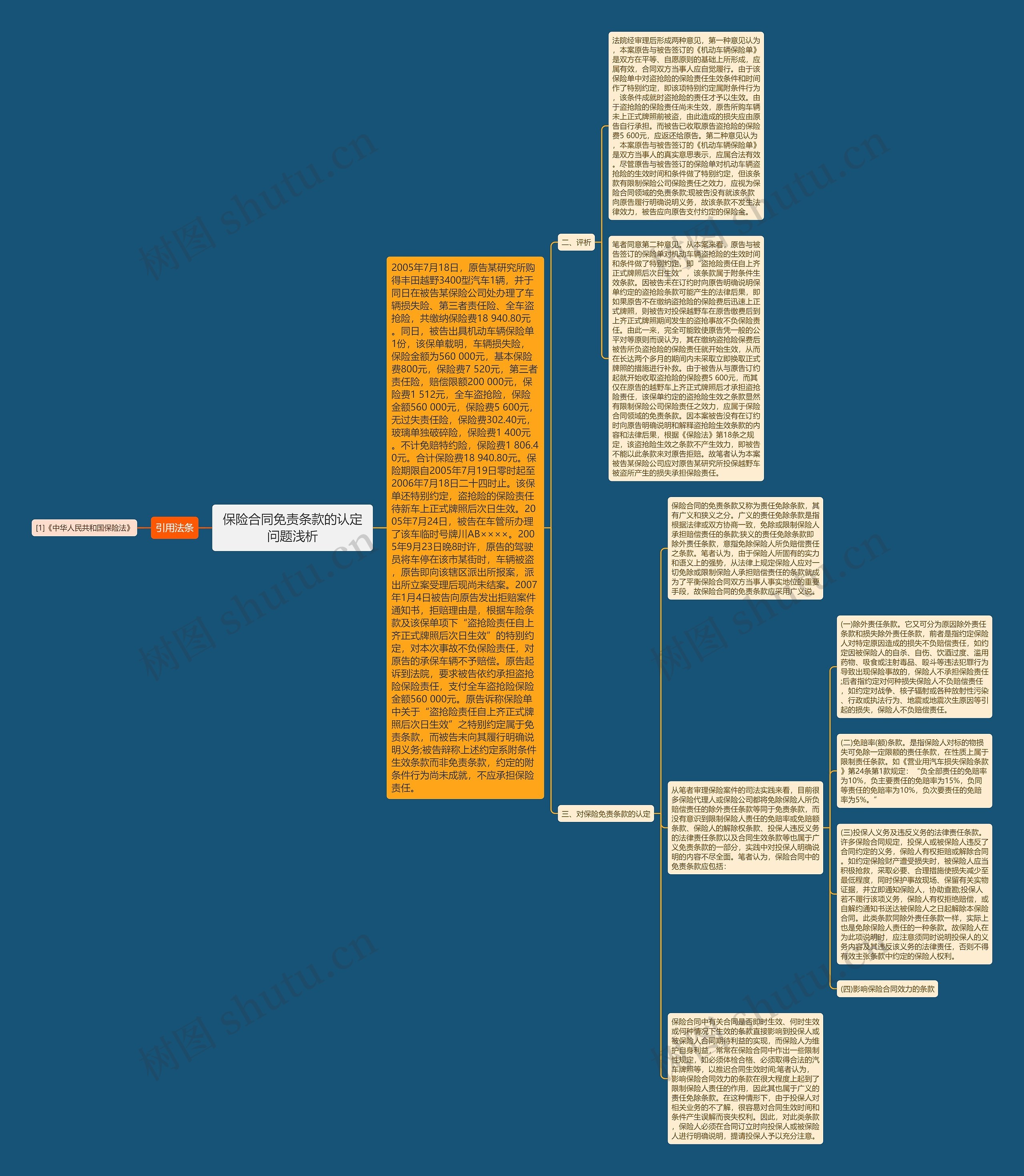 从笔者审理保险案件的司法实践来看,目前很多保险代理人或保险公司都将免除保险人所负赔偿责任的除外责任条款等同于免责条款,而没有意识到限制保险人责任的免赔率或免赔额条款、保险人的解除权条款、投保人违反义务的法律责任条款以及合同生效条款等也属于广义免责条款的一部分,实践中对投保人明确说明的内容不尽全面。笔者认为,保险合同中的免责条款应包括: