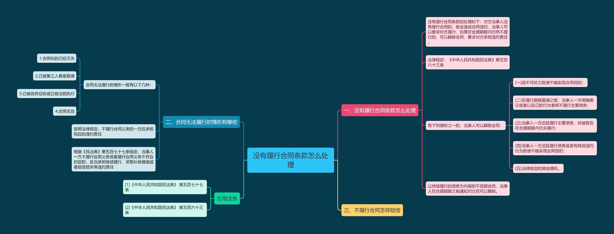 树图思维导图提供《没有履行合同条款怎么处理》在线思维导图免费制作,点击“编辑”按钮,可对《没有履行合同条款怎么处理》进行在线思维导图编辑,本思维导图属于思维导图模板主题,文件编号是:512a067884eabf446ae913c61ade4ff9