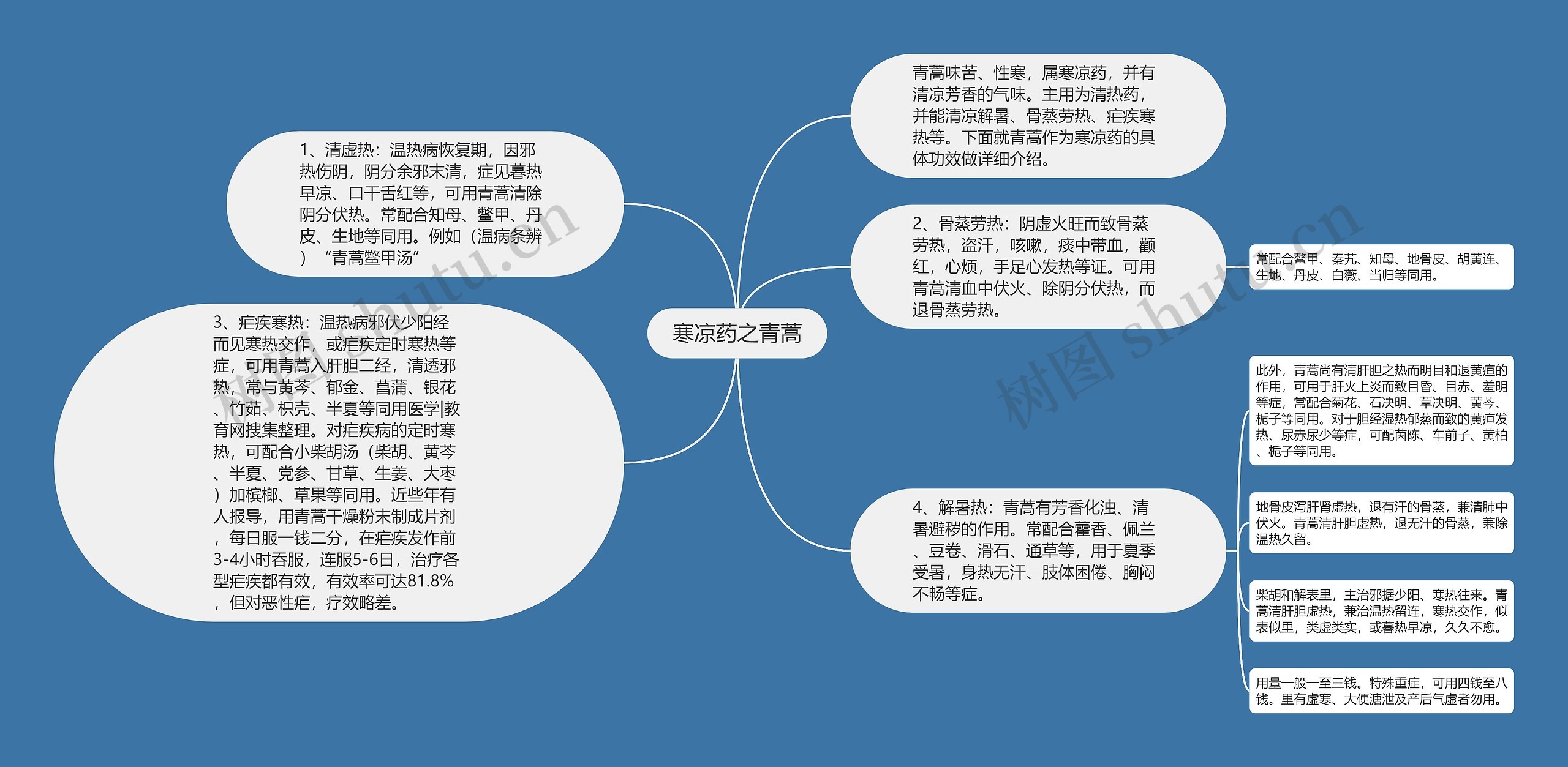青蒿味苦、性寒,属寒凉药,并有清凉芳香的气味。主用为清热药,并能清凉解暑、骨蒸劳热、疟疾寒热等。下面就青蒿作为寒凉药的具体功效做详细介绍。