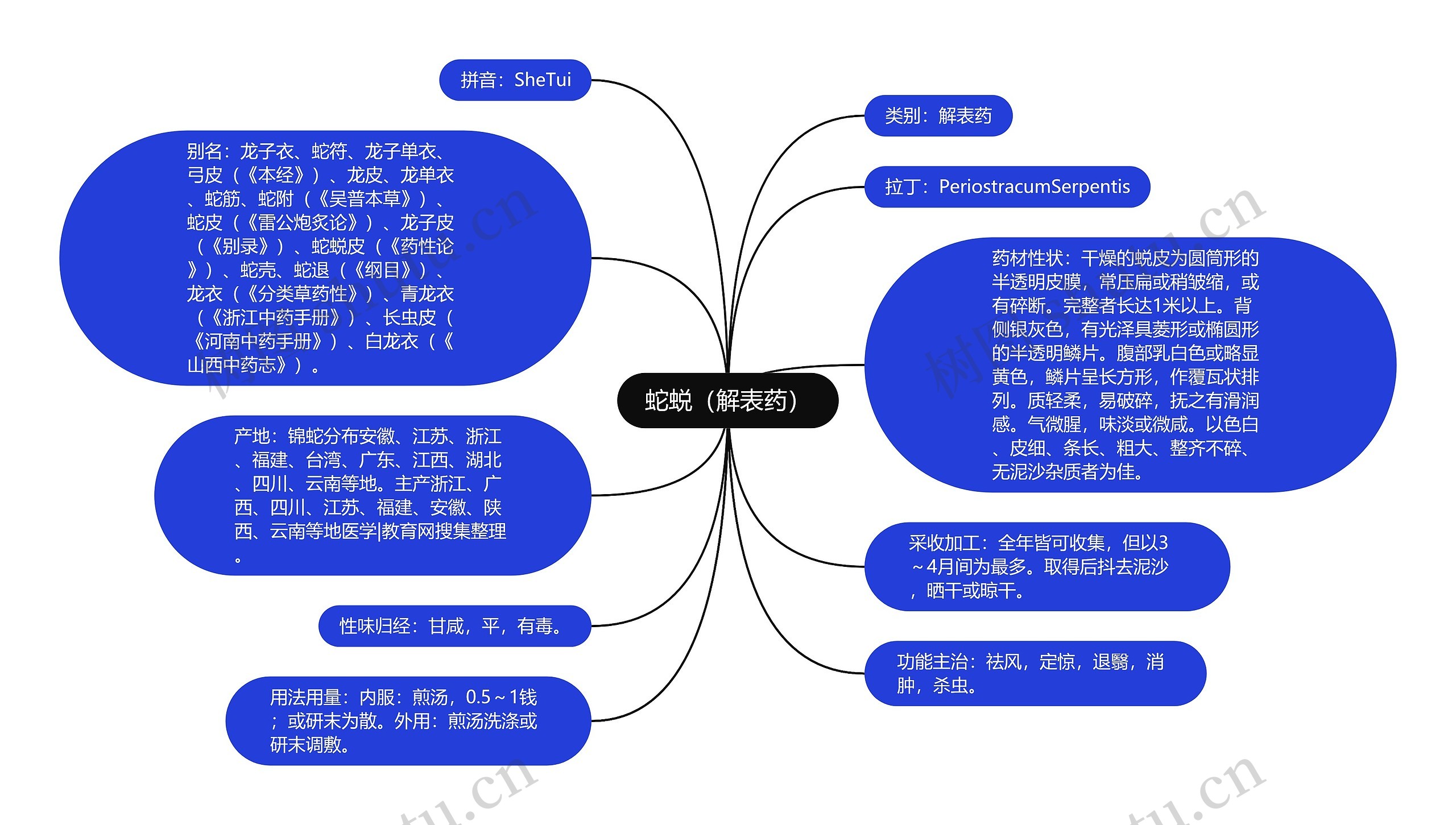 树图思维导图提供《蛇蜕(解表药)》在线思维导图免费制作,点击“编辑”按钮,可对《蛇蜕(解表药)》进行在线思维导图编辑,本思维导图属于思维导图模板主题,文件编号是:62c69281906d5447f5367a4302aaa785