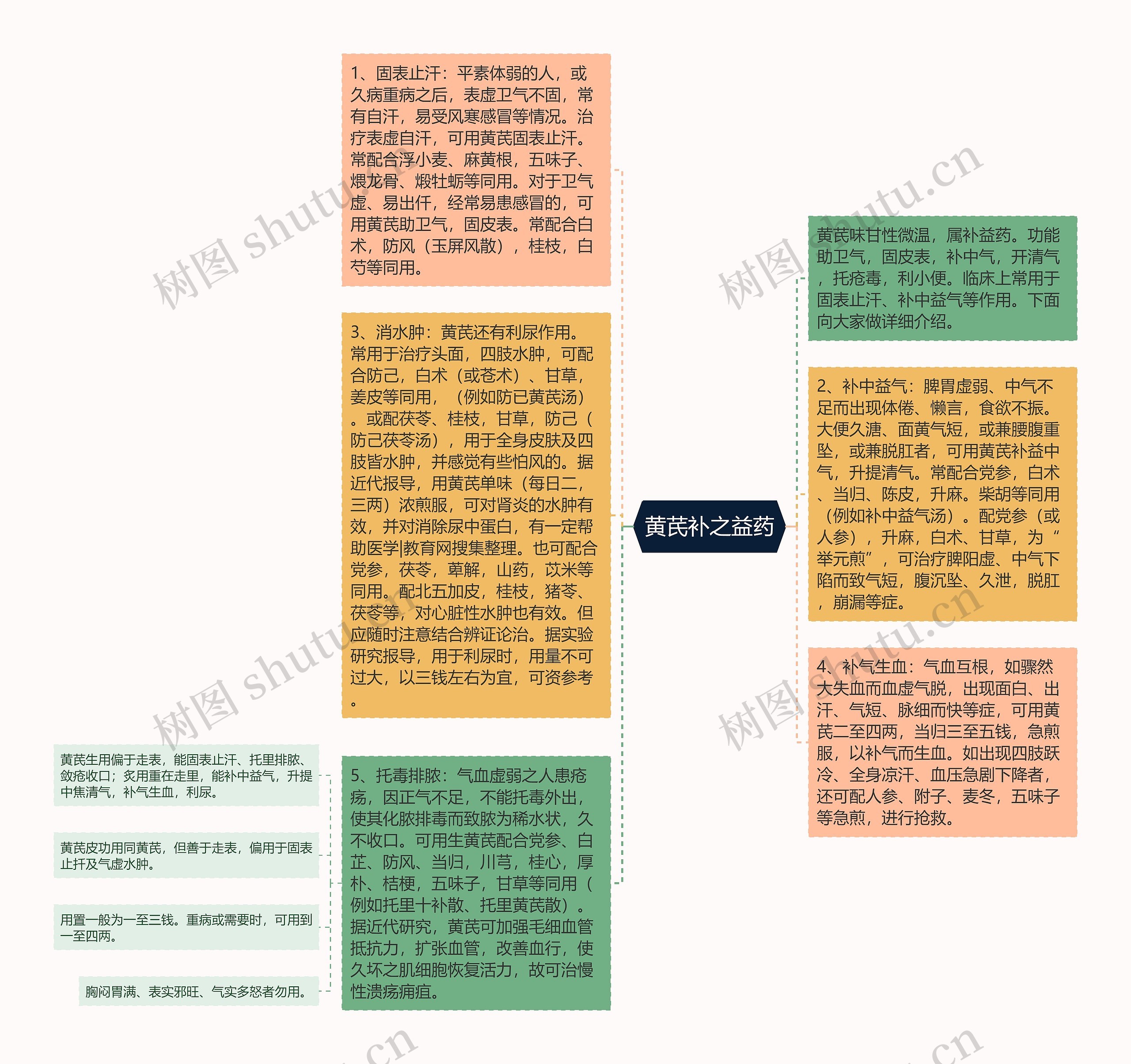 黄芪生用偏于走表,能固表止汗、托里排脓、敛疮收口;炙用重在走里,能补中益气,升提中焦清气,补气生血,利尿。