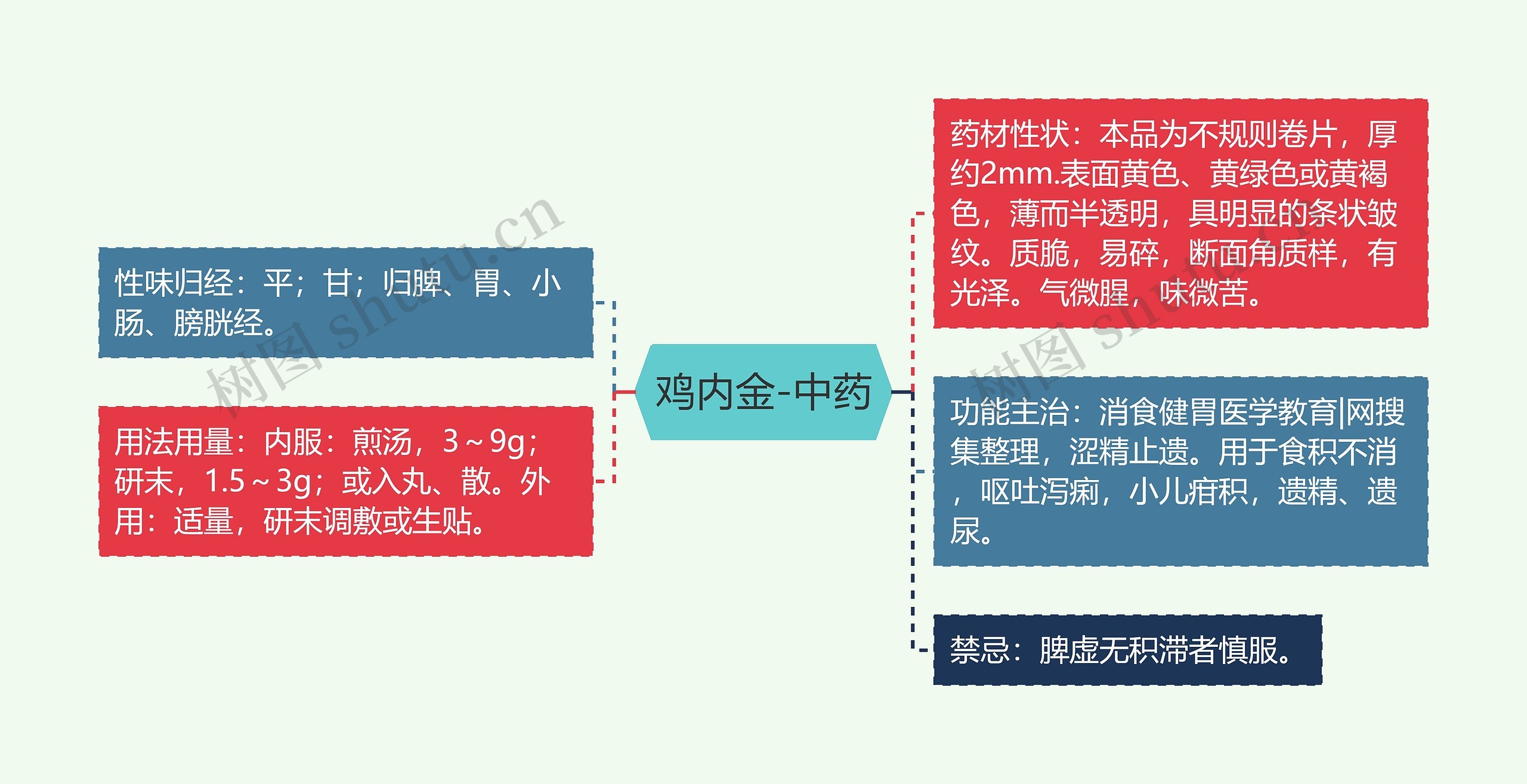 树图思维导图提供《鸡内金-中药》在线思维导图免费制作,点击“编辑”按钮,可对《鸡内金-中药》进行在线思维导图编辑,本思维导图属于思维导图模板主题,文件编号是:b624406beb70aebf25bb0b9075c70173
