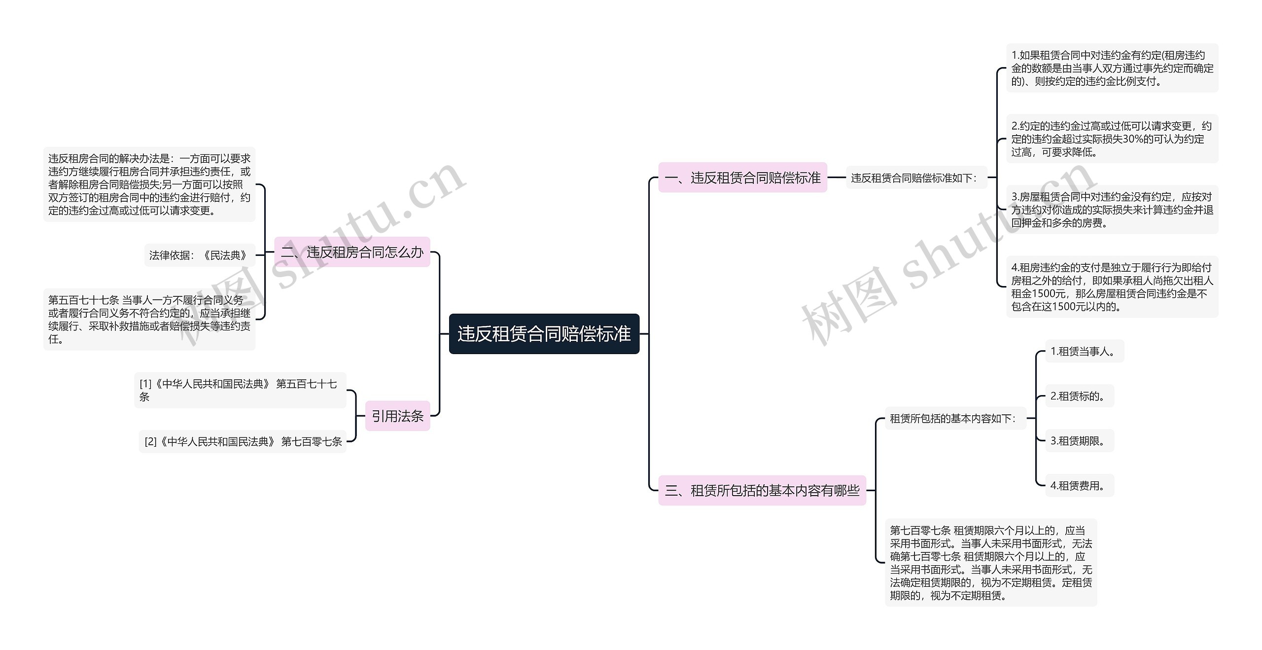 树图思维导图提供《违反租赁合同赔偿标准》在线思维导图免费制作,点击“编辑”按钮,可对《违反租赁合同赔偿标准》进行在线思维导图编辑,本思维导图属于思维导图模板主题,文件编号是:6e1ddfa6ef3dd8eafd2f99889abe96d6