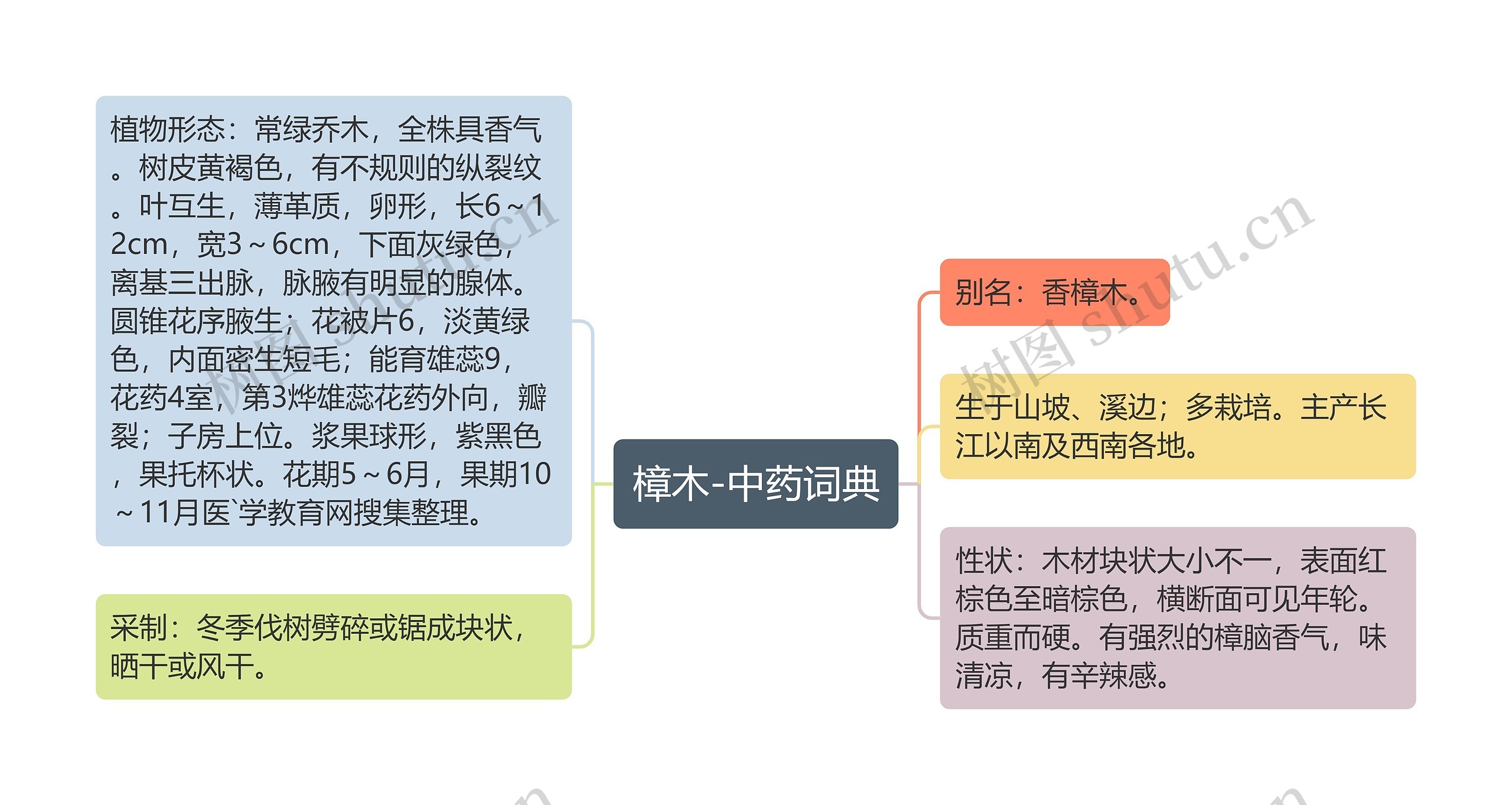 树图思维导图提供《樟木-中药词典》在线思维导图免费制作,点击“编辑”按钮,可对《樟木-中药词典》进行在线思维导图编辑,本思维导图属于思维导图模板主题,文件编号是:00800aceafaed71d62658aae8a81b297