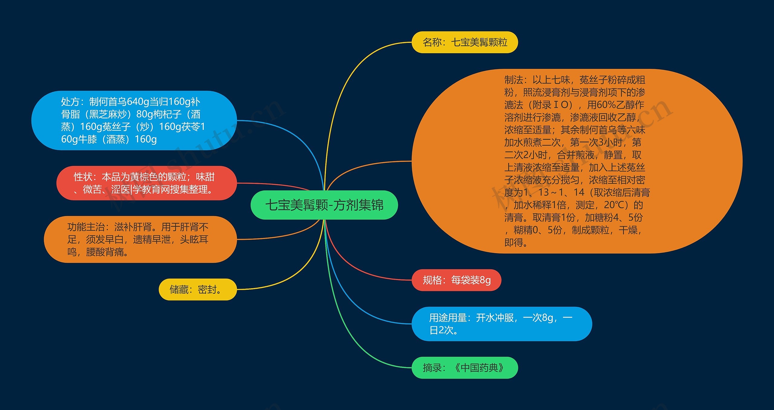 树图思维导图提供《七宝美髯颗-方剂集锦》在线思维导图免费制作,点击“编辑”按钮,可对《七宝美髯颗-方剂集锦》进行在线思维导图编辑,本思维导图属于思维导图模板主题,文件编号是:84a904bc3d9a1f30b3b1bdea716a0d45