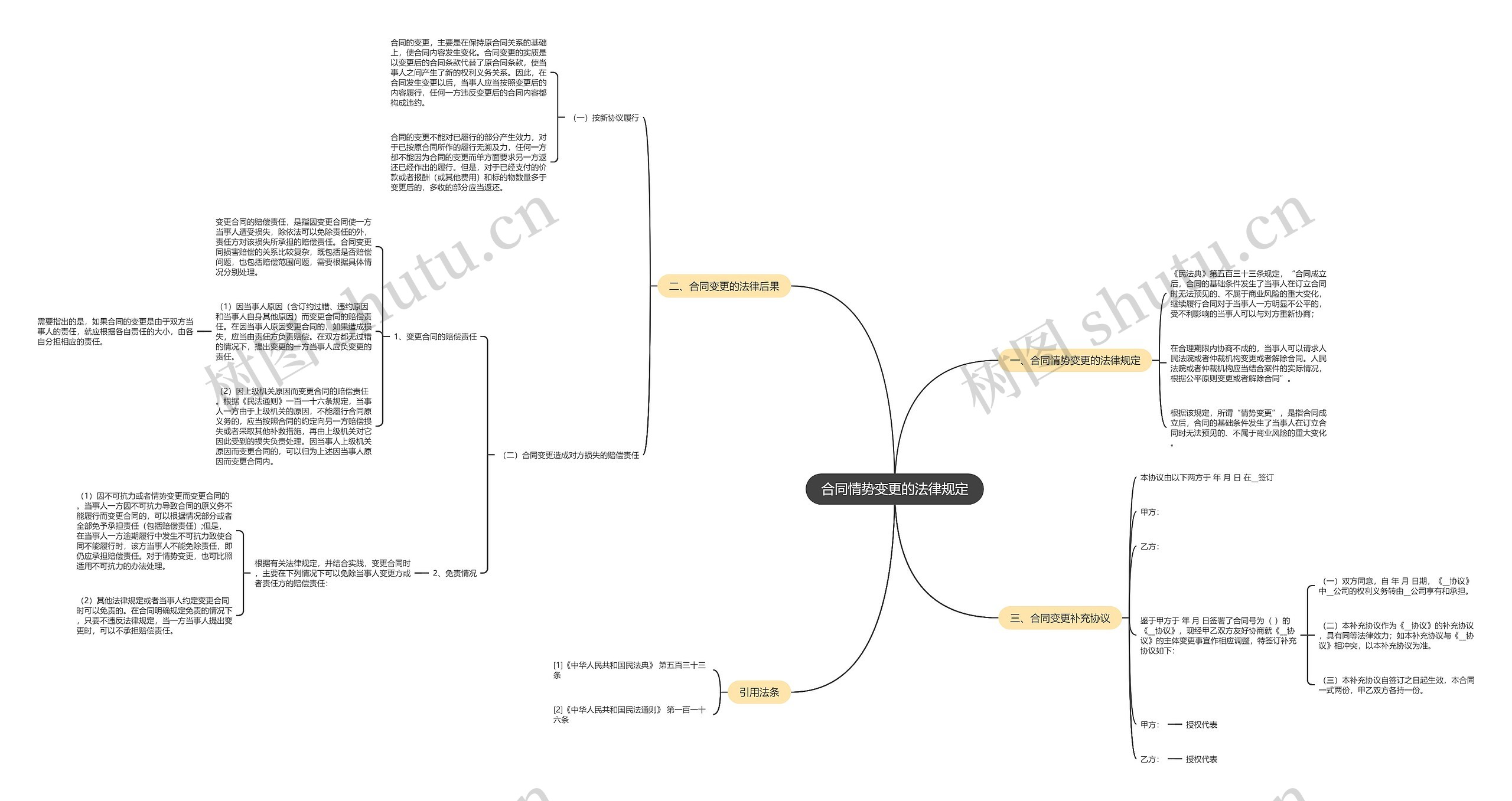 树图思维导图提供《合同情势变更的法律规定》在线思维导图免费制作,点击“编辑”按钮,可对《合同情势变更的法律规定》进行在线思维导图编辑,本思维导图属于思维导图模板主题,文件编号是:ed867c5786a90eee23c47053de73b76f
