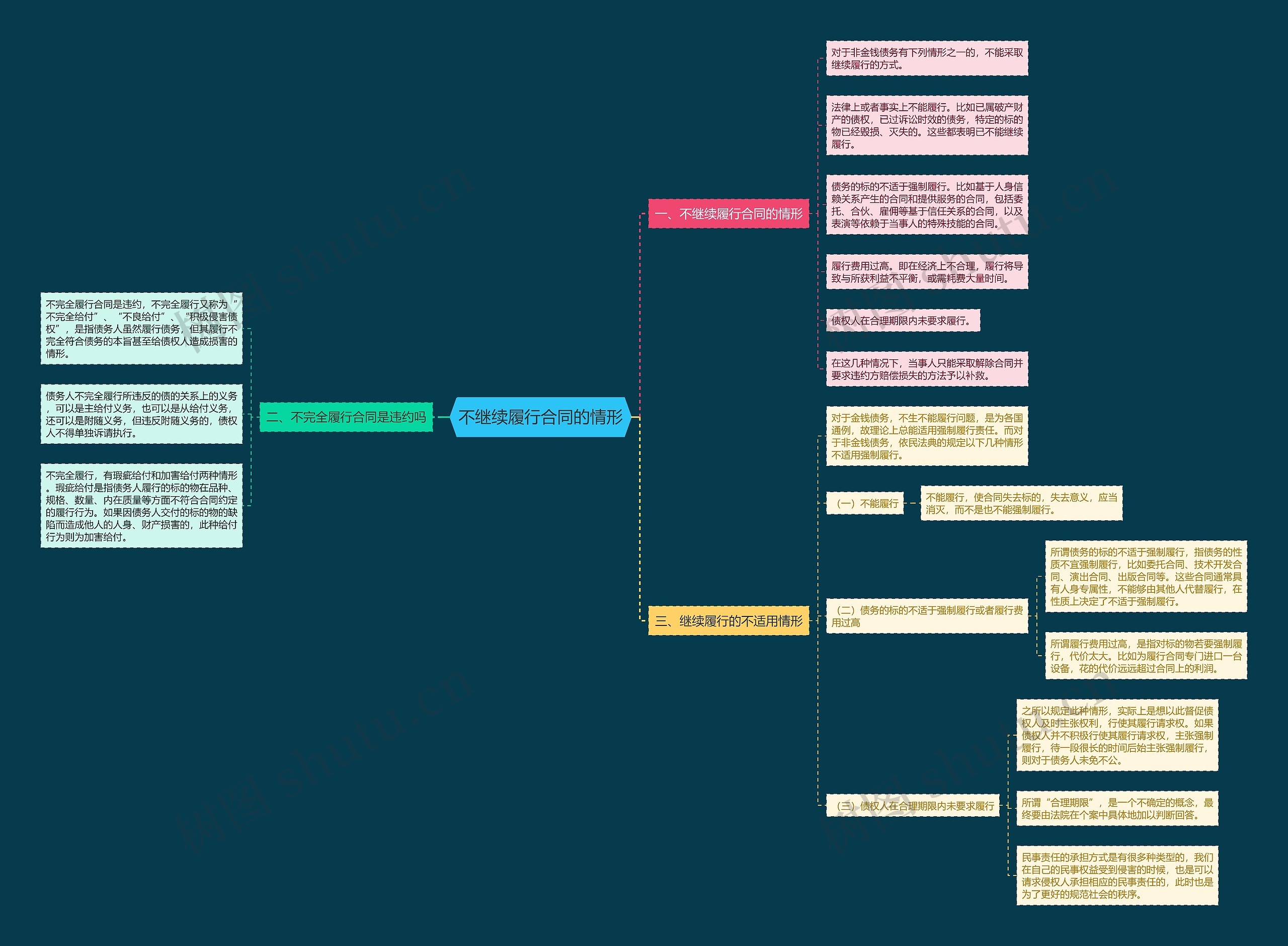 树图思维导图提供《不继续履行合同的情形》在线思维导图免费制作,点击“编辑”按钮,可对《不继续履行合同的情形》进行在线思维导图编辑,本思维导图属于思维导图模板主题,文件编号是:1cacf5b47400361f8ccca436f45a27f9