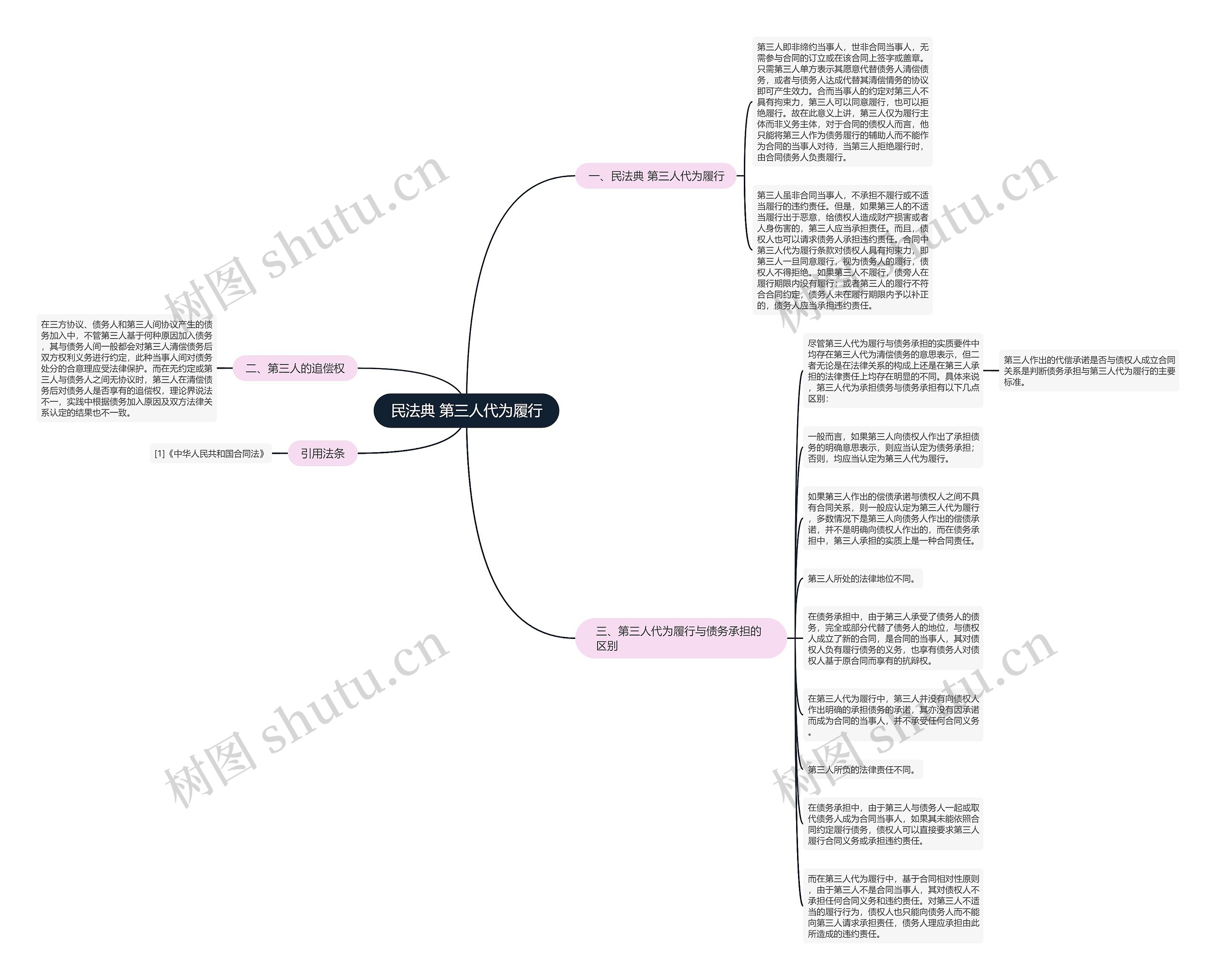 在第三人代为履行中,第三人并没有向债权人作出明确的承担债务的承诺,其亦没有因承诺而成为合同的当事人,并不承受任何合同义务。