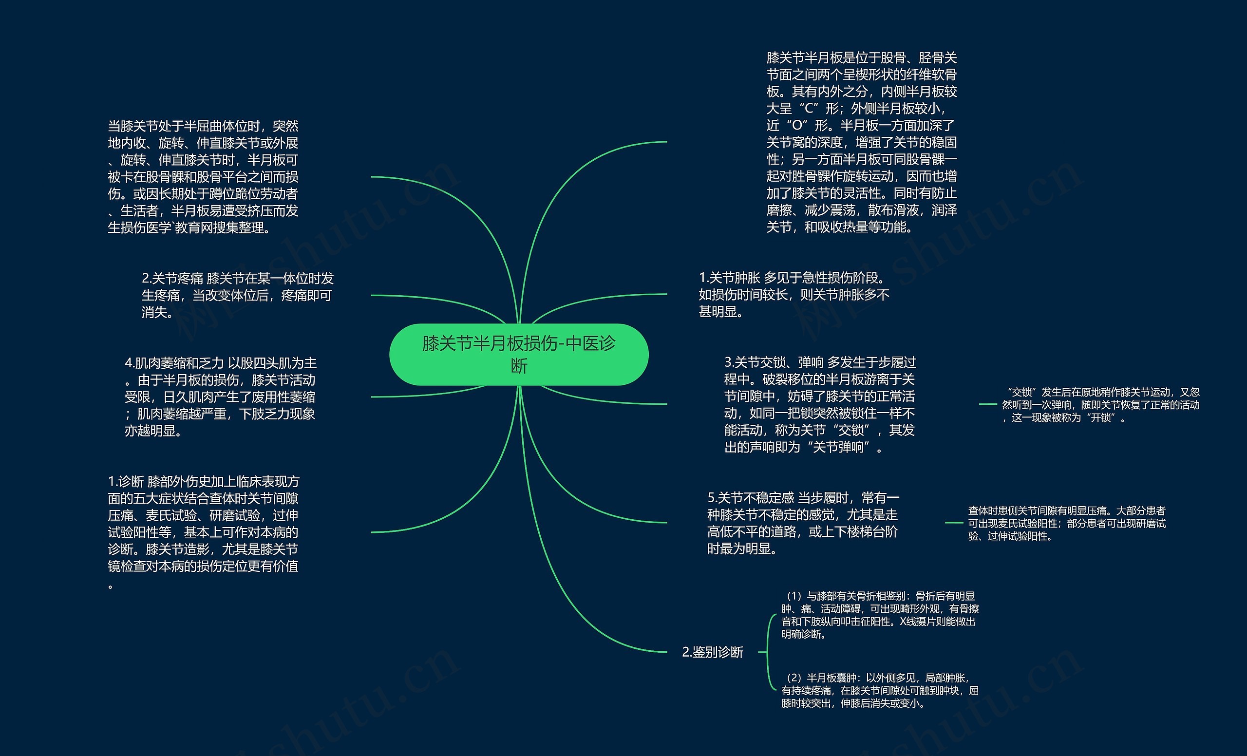 1.诊断 膝部外伤史加上临床表现方面的五大症状结合查体时关节间隙压痛、麦氏试验、研磨试验,过伸试验阳性等,基本上可作对本病的诊断。膝关节造影,尤其是膝关节镜检查对本病的损伤定位更有价值。
