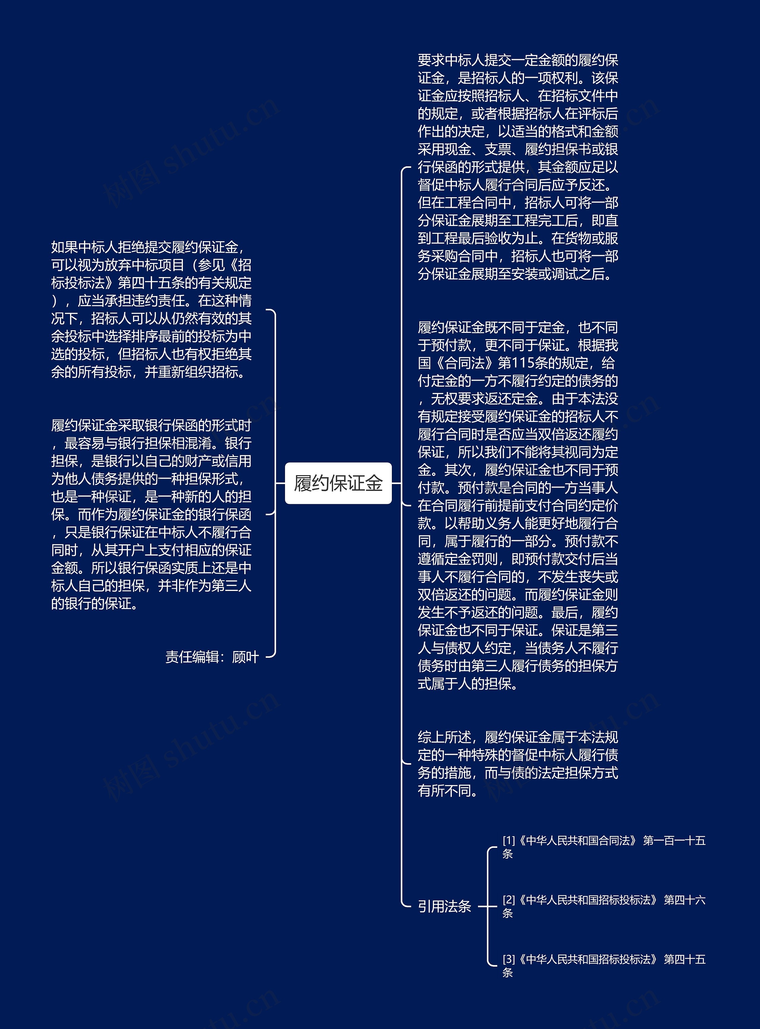 综上所述,履约保证金属于本法规定的一种特殊的督促中标人履行债务的措施,而与债的法定担保方式有所不同。