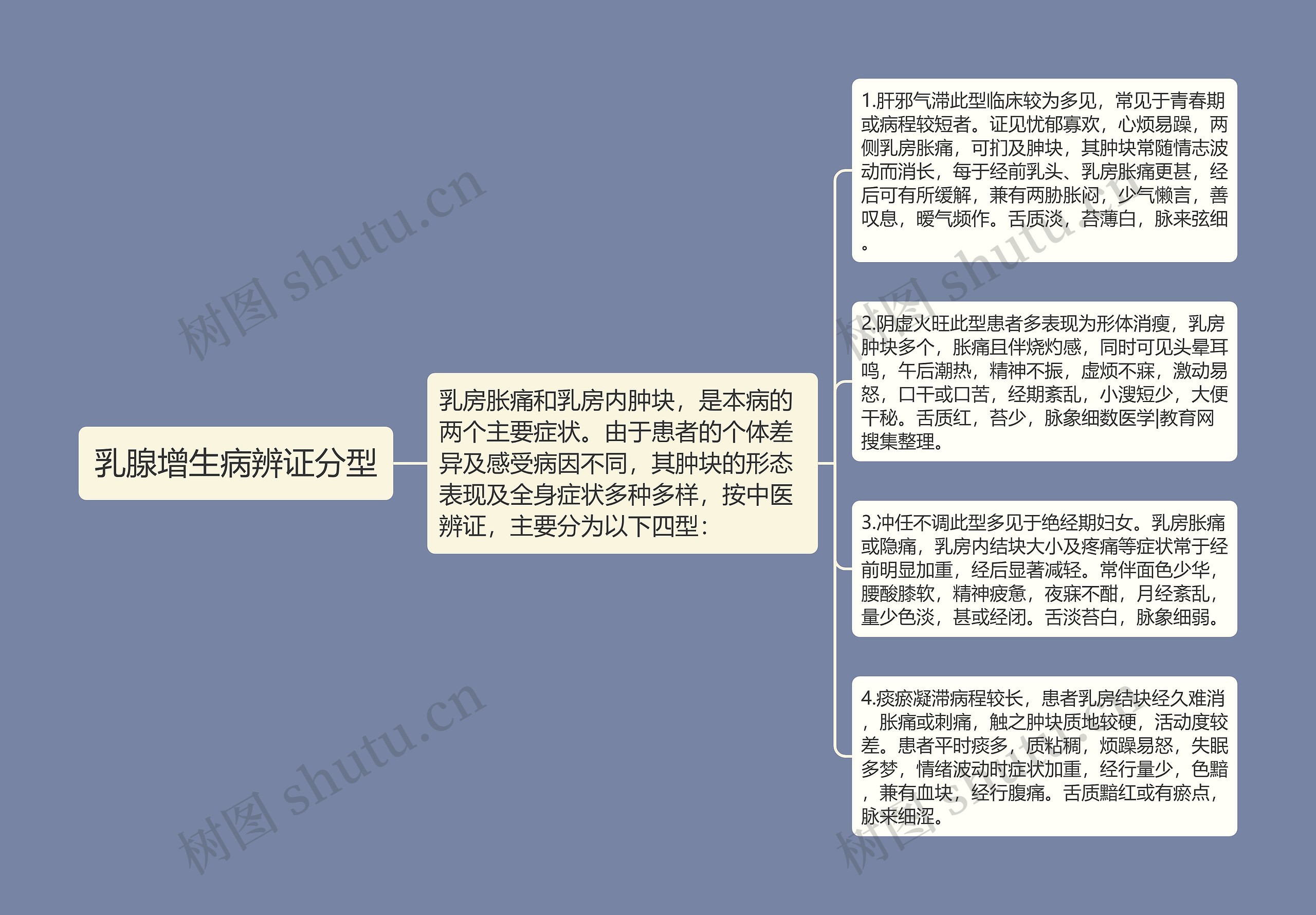 树图思维导图提供《乳腺增生病辨证分型》在线思维导图免费制作,点击“编辑”按钮,可对《乳腺增生病辨证分型》进行在线思维导图编辑,本思维导图属于思维导图模板主题,文件编号是:b4043a8734ea4dc76ef8d011393e2cb6