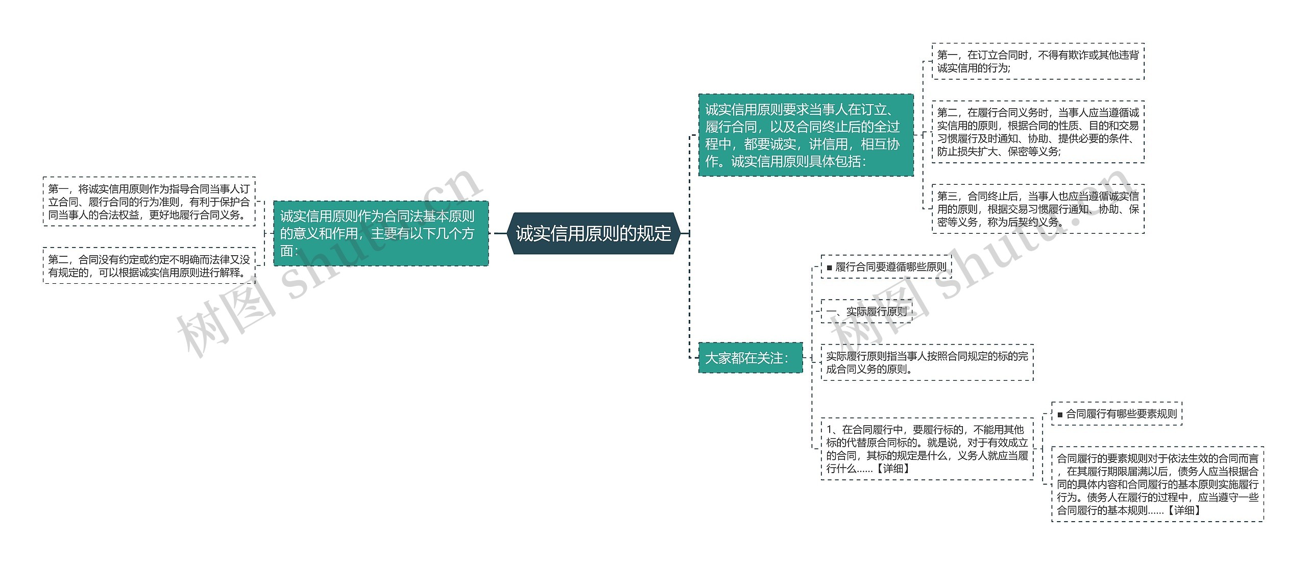 核心内容:诚实信用原则的规定是什么?诚实信用原则包括哪些内容?订立合同,履行合同义务,终止合同后,合同当事人不得违背诚实信用的行为。诚实信用原则作为合同法基本原则的意义和作用有哪些方面?接下来树图网小编为您详细介绍。