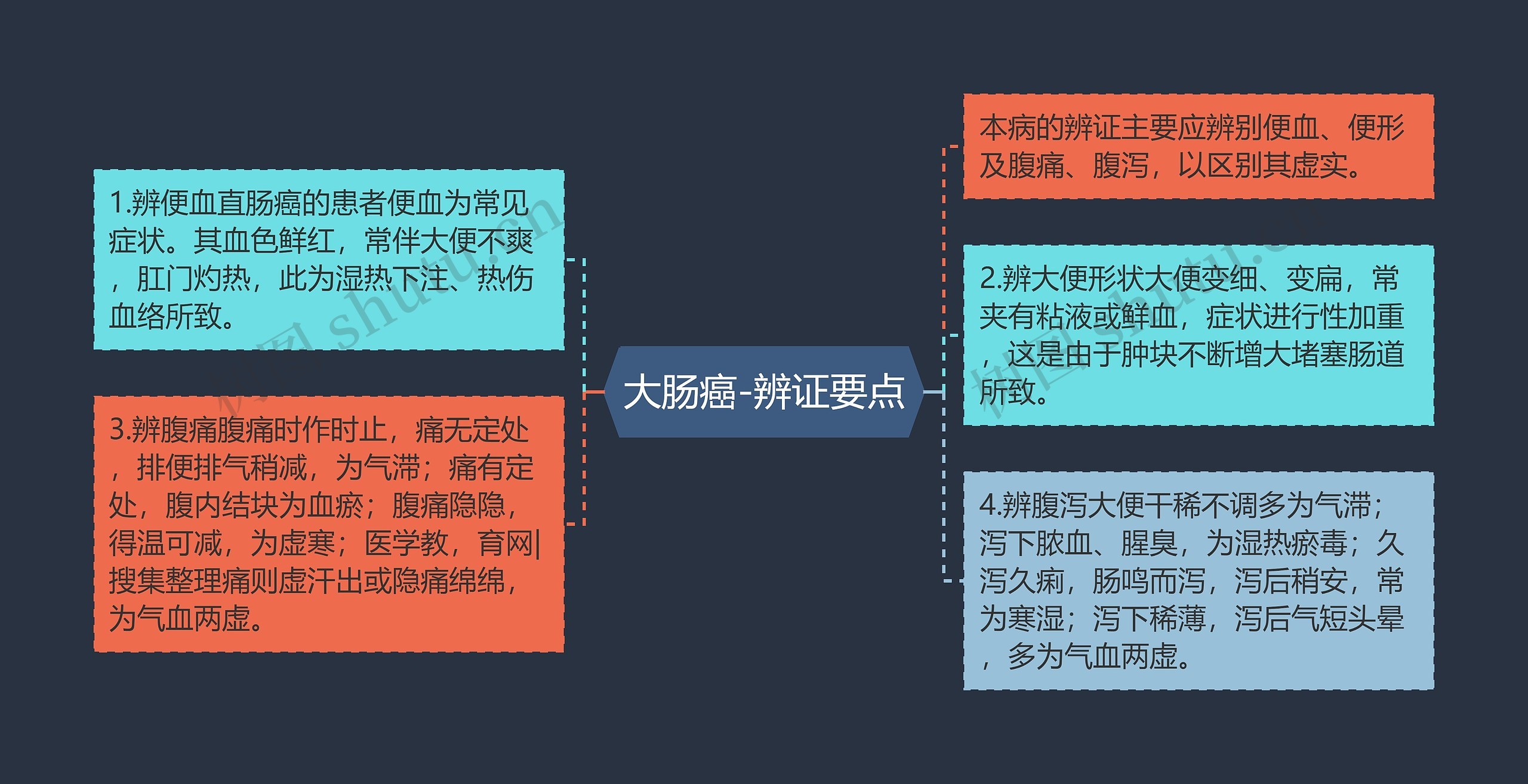 树图思维导图提供《大肠癌-辨证要点》在线思维导图免费制作,点击“编辑”按钮,可对《大肠癌-辨证要点》进行在线思维导图编辑,本思维导图属于思维导图模板主题,文件编号是:17fa24f08b60aacf83a139100077693f